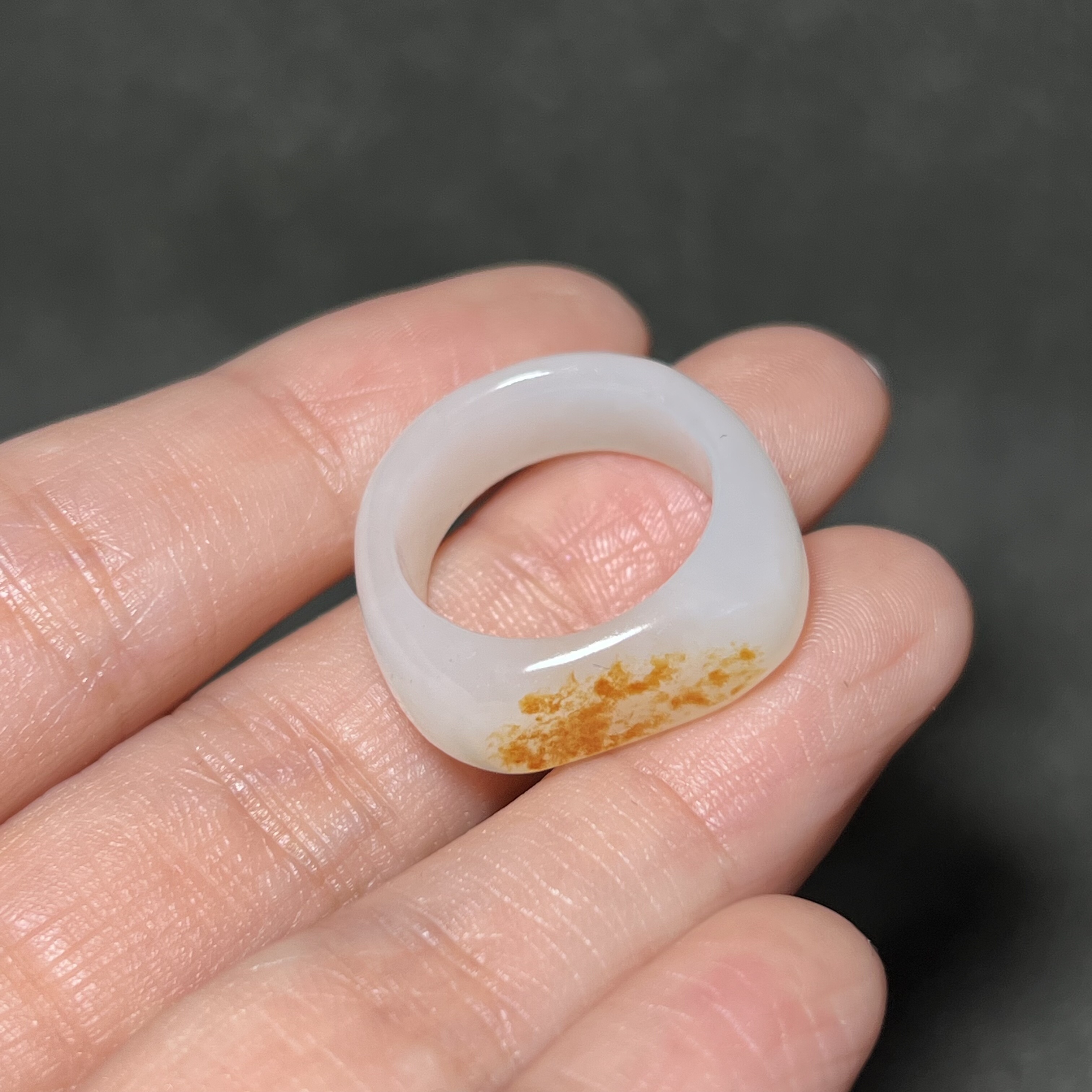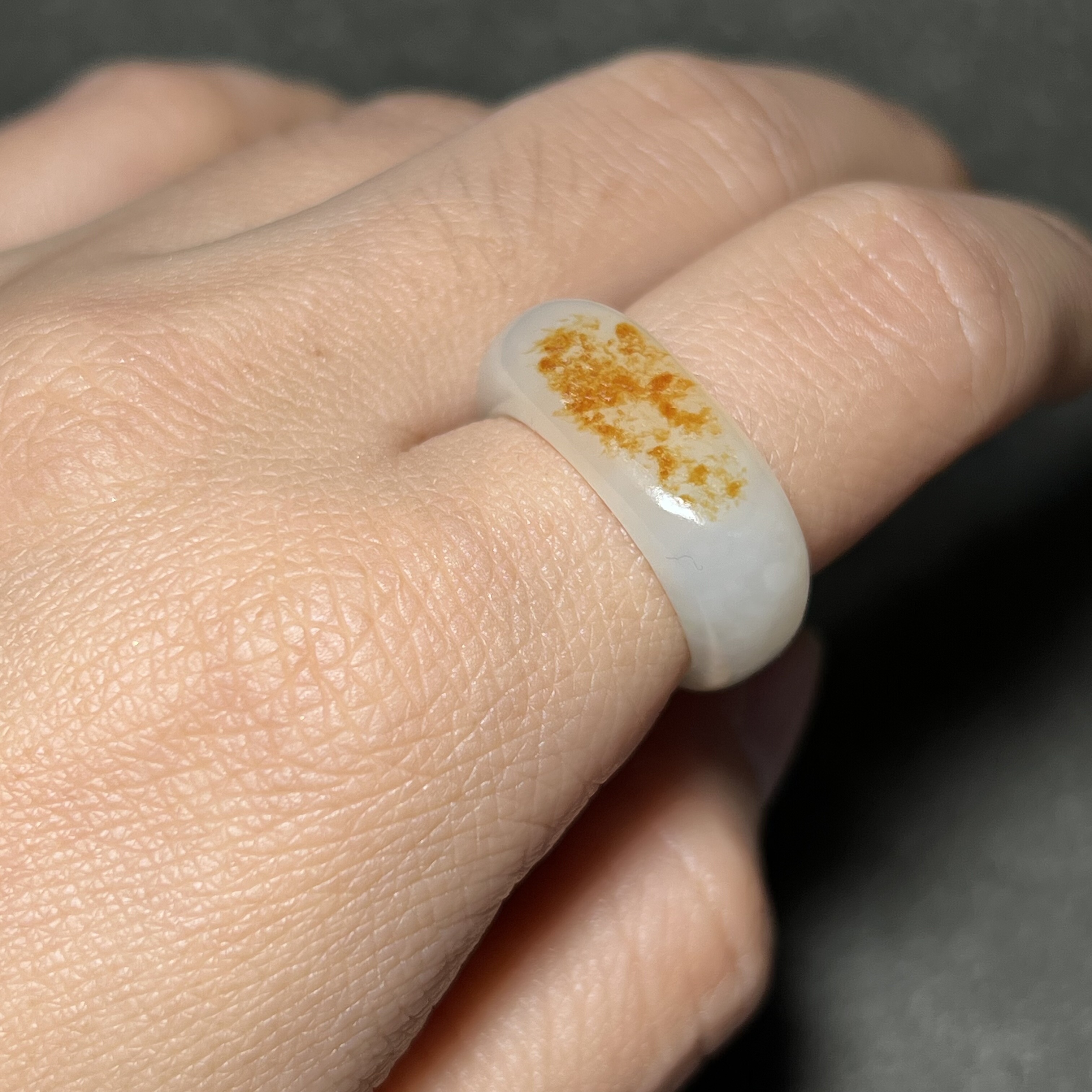 新疆和田玉白玉籽料戒指马鞍戒苏工精品男女款玉器指环17mm红皮