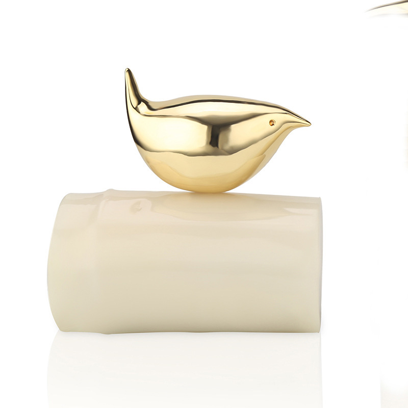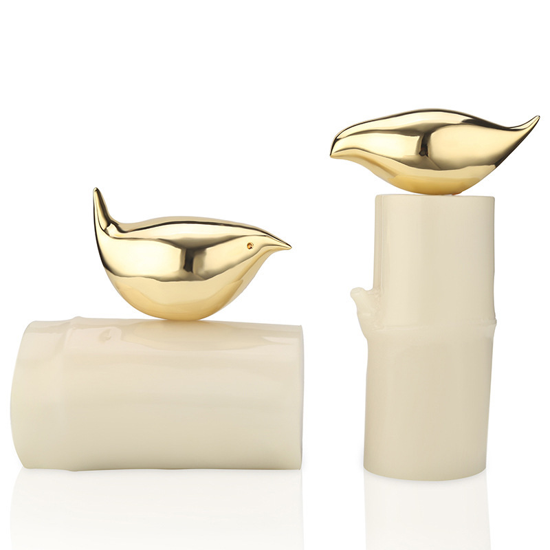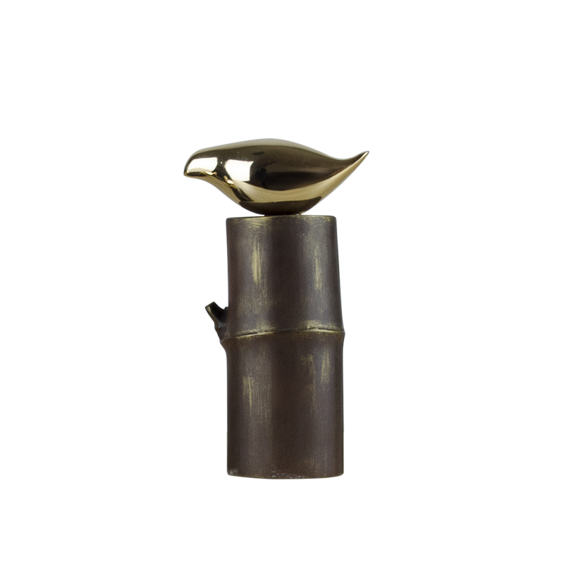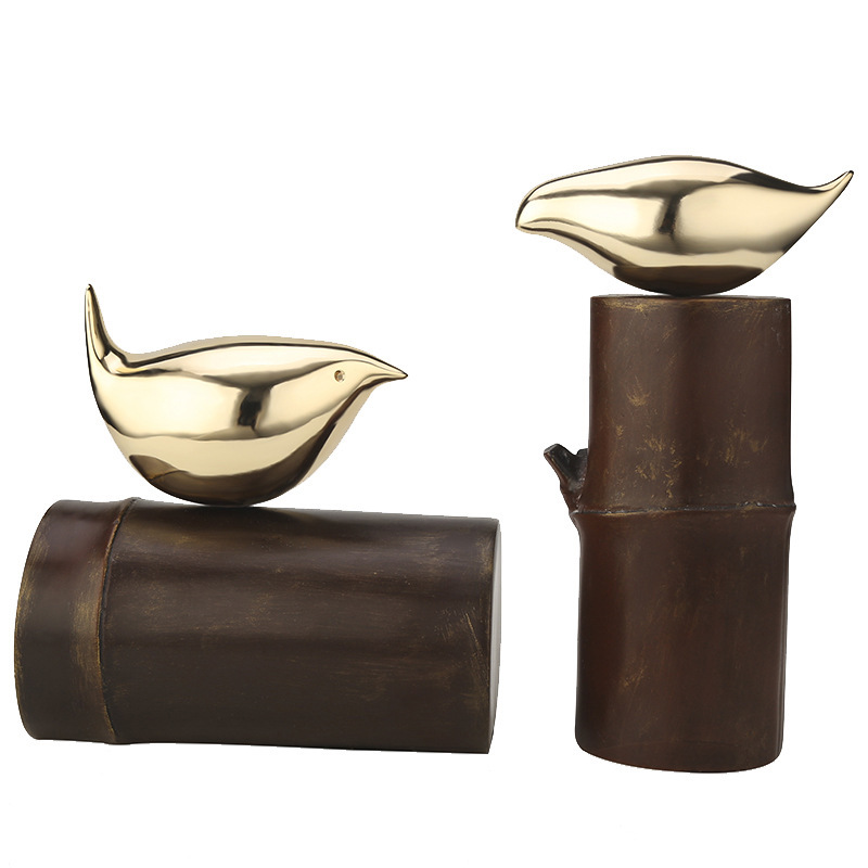 现代新中式家居客厅书房书架软装饰品树脂竹O节鸟摆件小鸟工艺品
