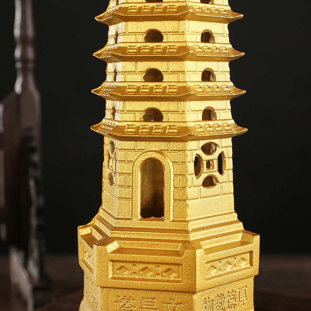 20CM九层文昌塔纯黄铜家居书房桌面装饰学生礼品9层塔金属工艺品