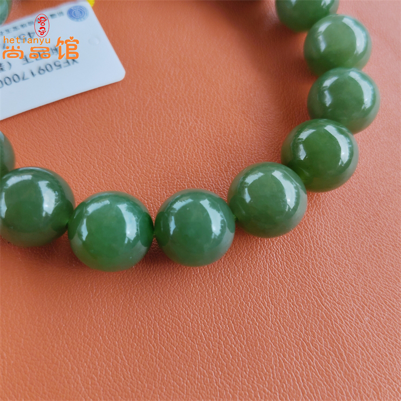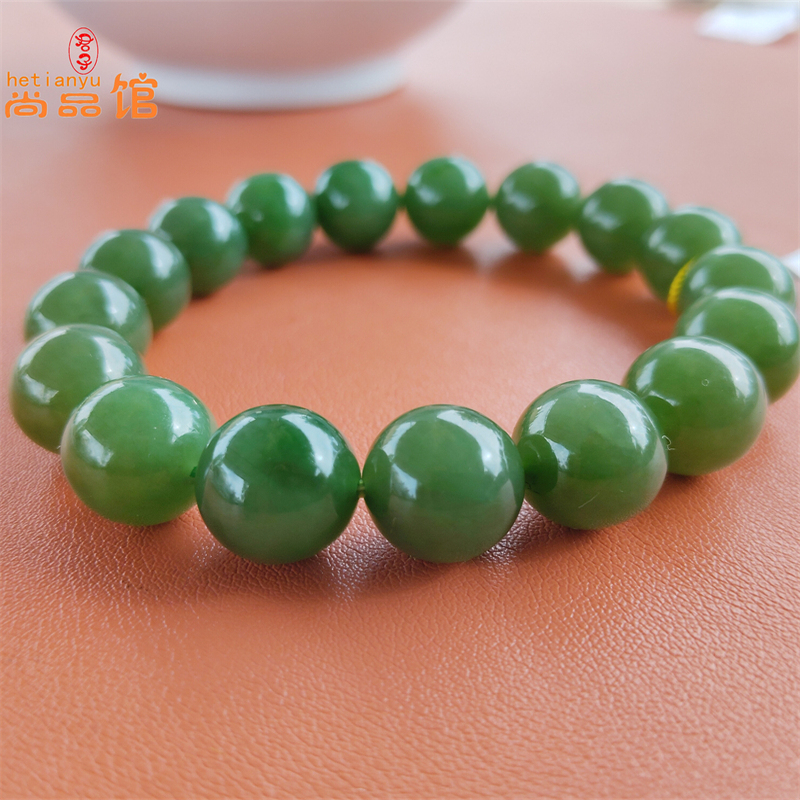 碧玉圆珠12mm手串豆绿和田碧玉无黑点颜色均匀女款手链