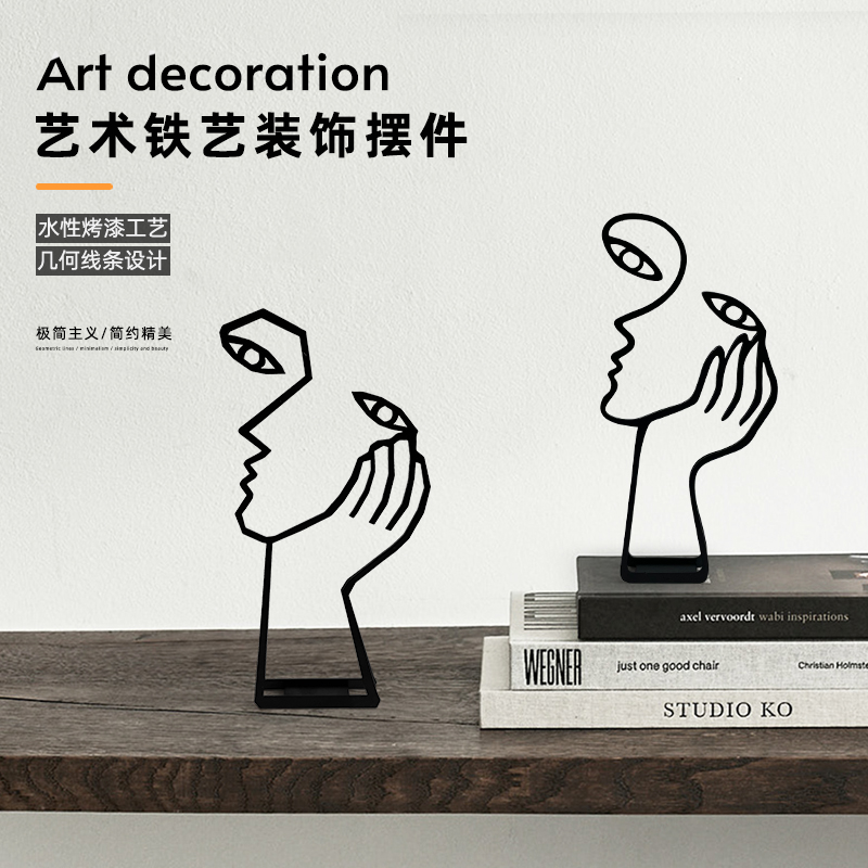 创意男女铁艺办公室桌面摆件家居个性人物金属工艺品客厅简约装饰