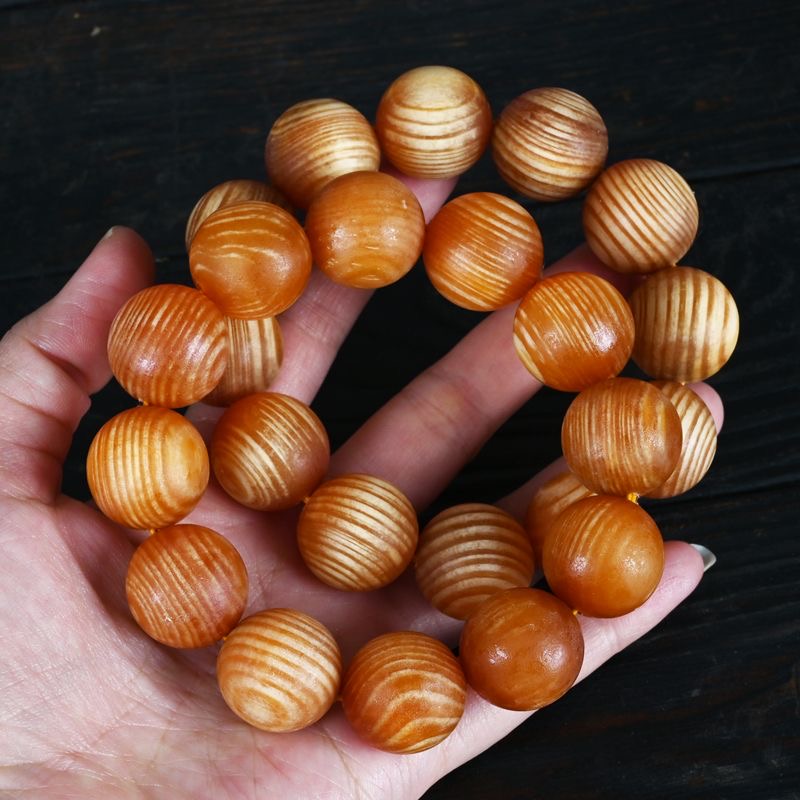 现货速发琥珀木手串东北长白山北沉香满油松明子全透光手链佛珠玉
