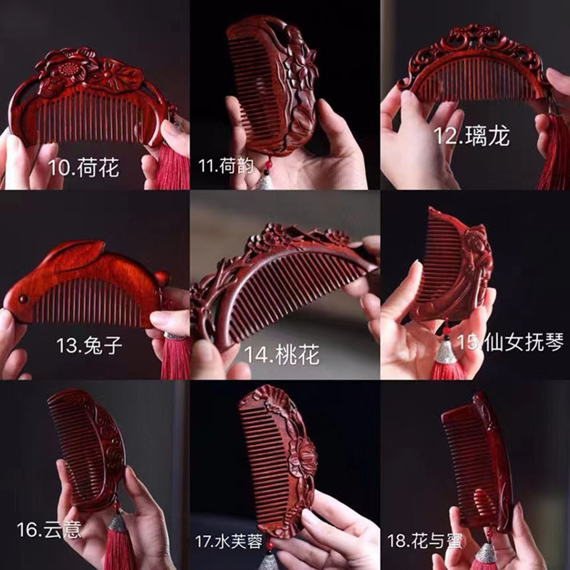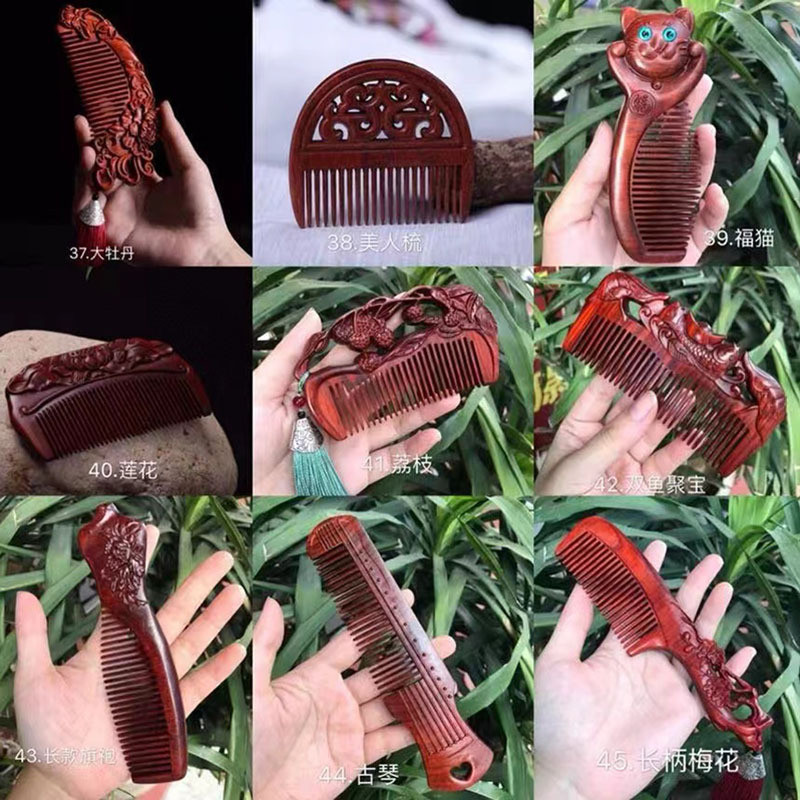 犀角紫檀木精细打磨雕刻多款双面木梳复古长发梳便携木梳子送亲朋