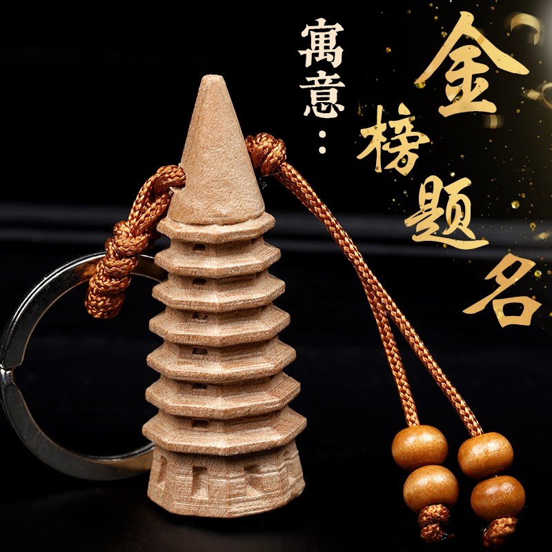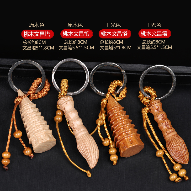寅亥堂天然桃木文昌塔钥匙扣文昌笔挂件学生职员老板高管随身佩戴