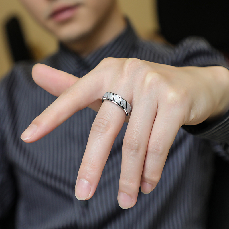 SAYA不掉色男戒指银色简约食指单身戒J指潮个性钨金戒子男时尚首