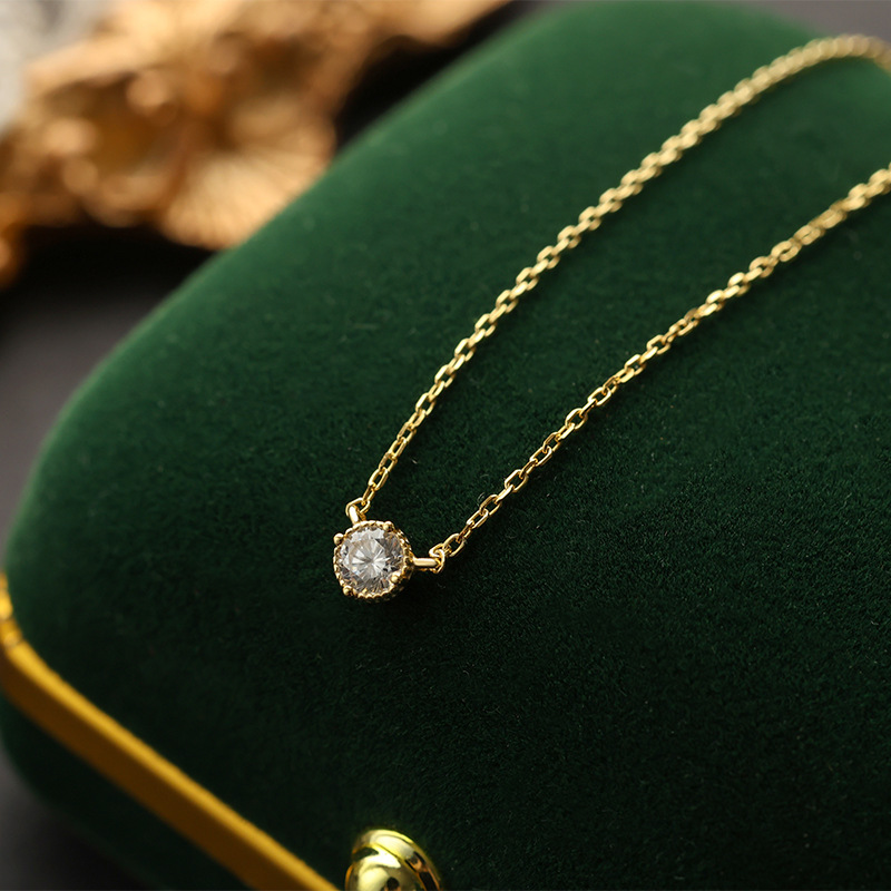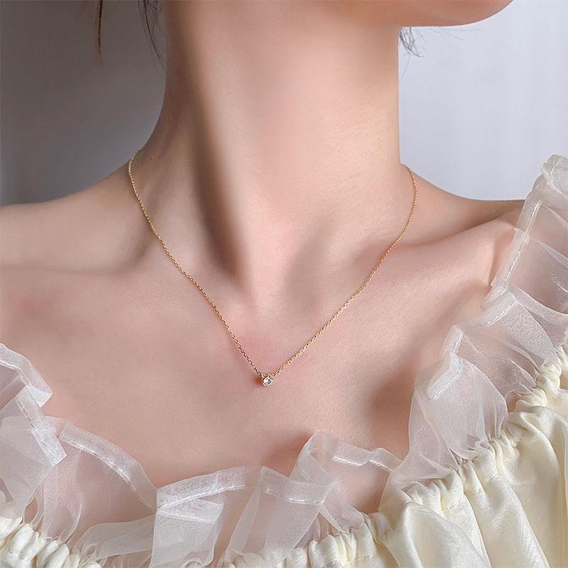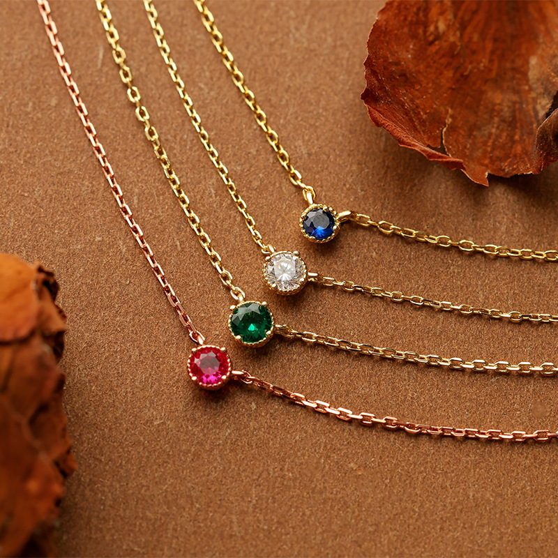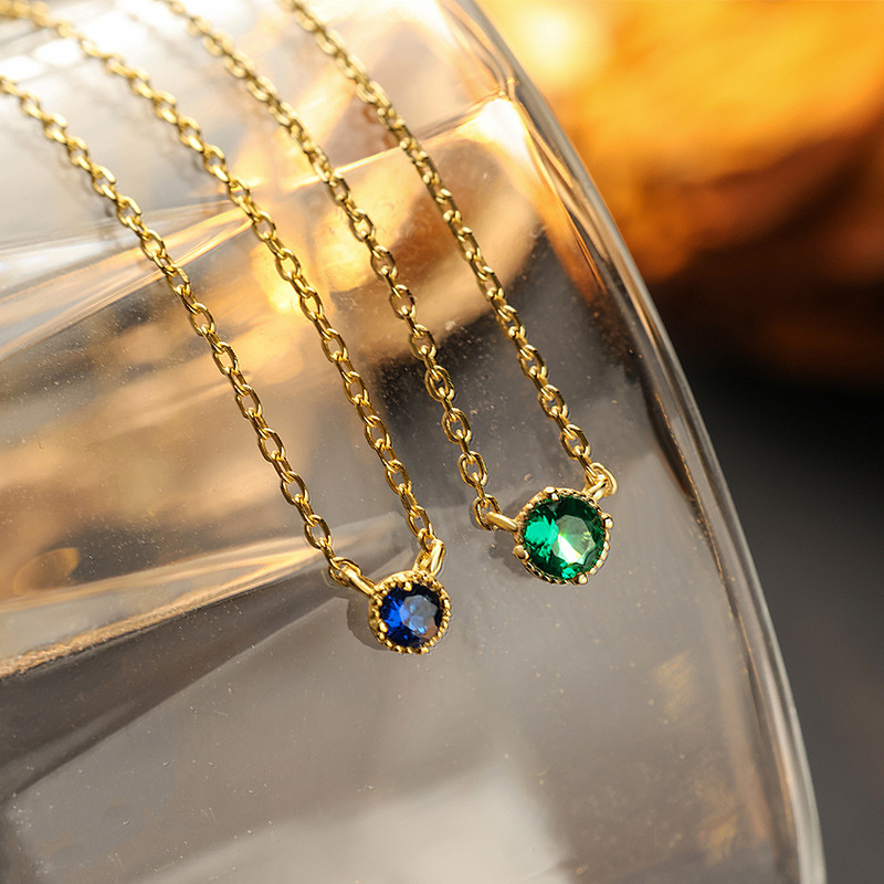 日系轻奢一颗绿钻红钻蓝钻 单颗蓝宝石项链银镀金小钻锁骨链精致