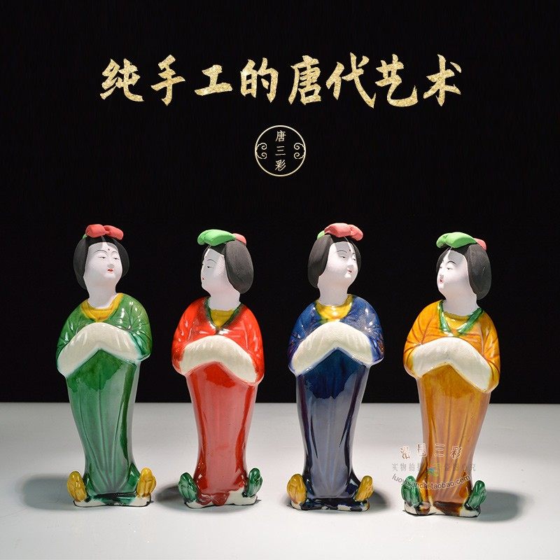 唐三彩人物陶瓷美女胖妞摆件手工艺品中国风陶俑仕女洛阳旅游纪念