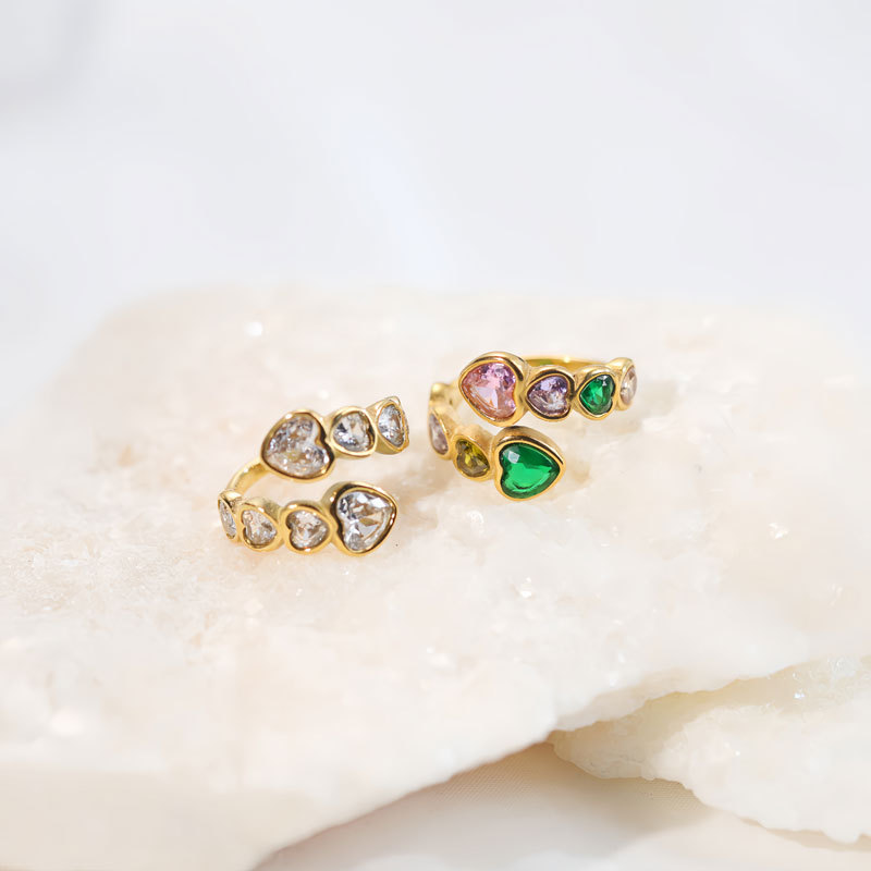 欧美跨境设计桃心镶钻戒指女钛钢镀18K金指环INS轻奢中指食指手饰