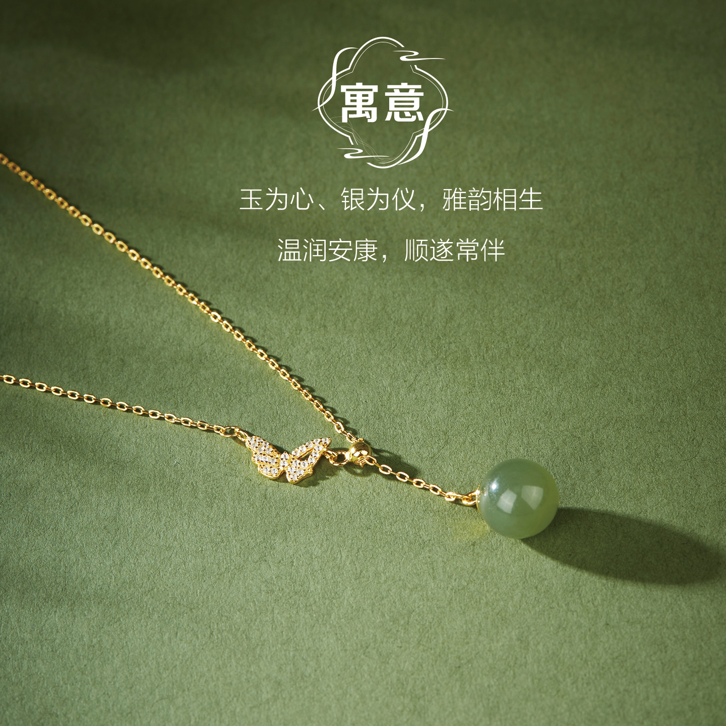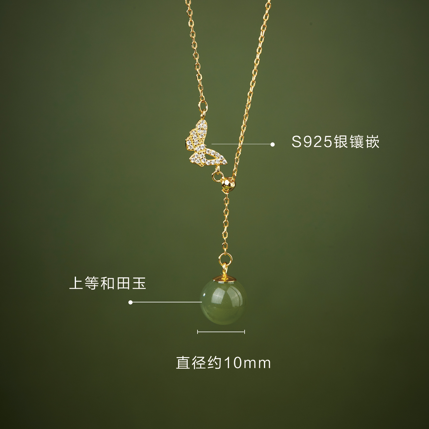 七彩云南和田玉项链女玉石吊坠银镶玉挂件蝴蝶设计挂坠送女友礼物