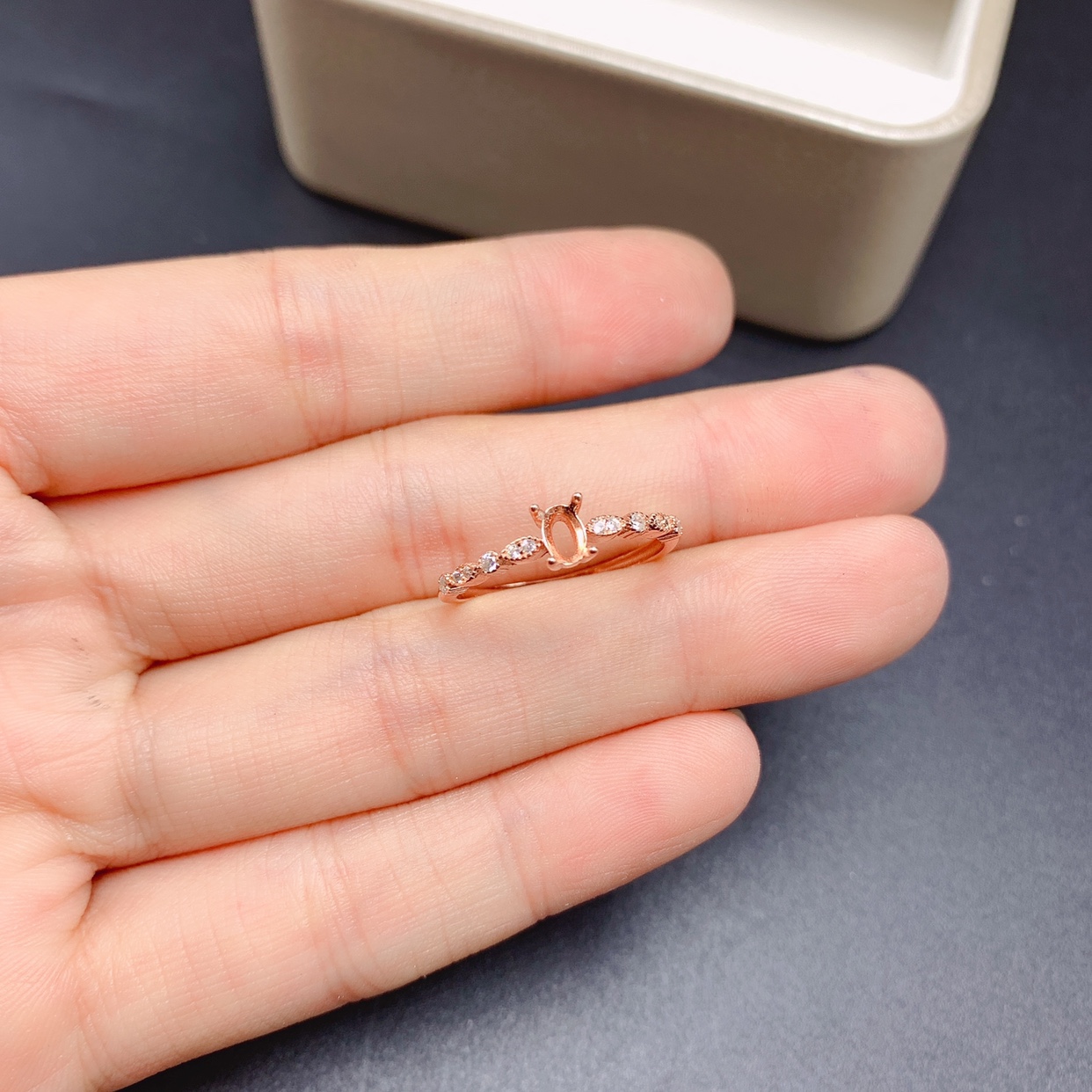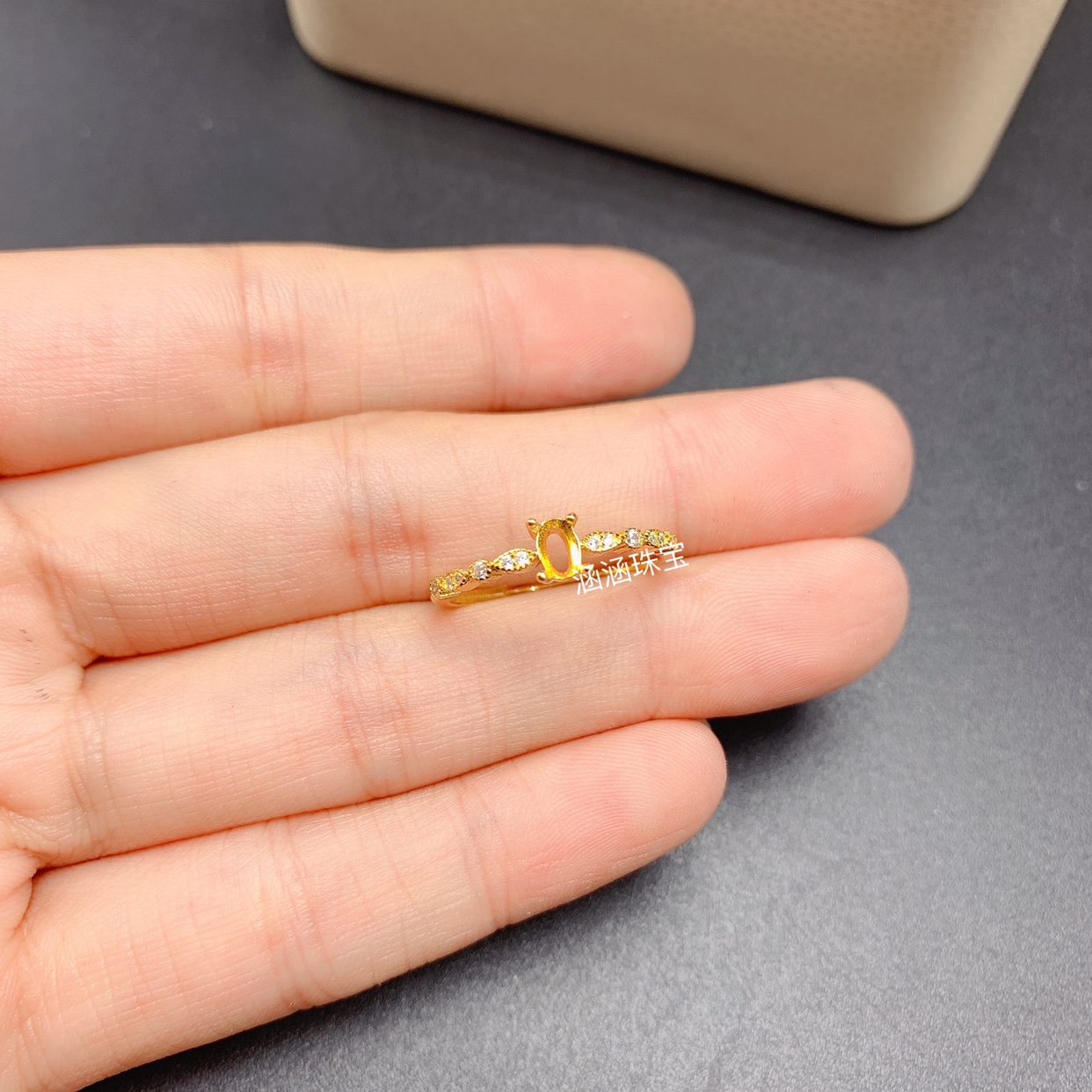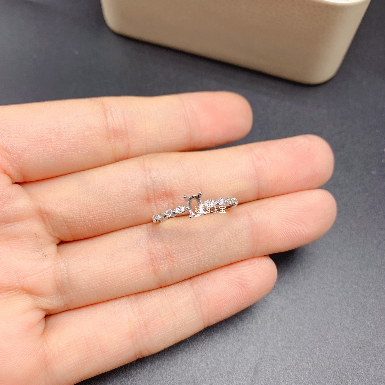 s925银饰品戒指空托椭圆形3*5mm代镶红宝石 祖母绿 简单清新 x