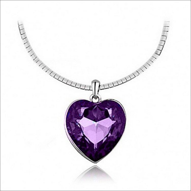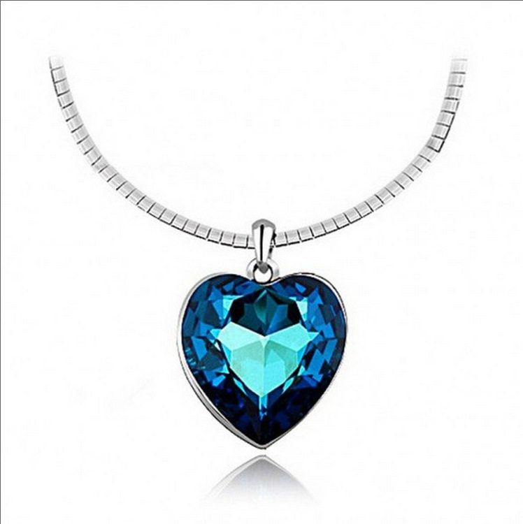 首饰欧美情人节礼物亚马逊大号海洋之心甜美心形水晶项饰锁骨链