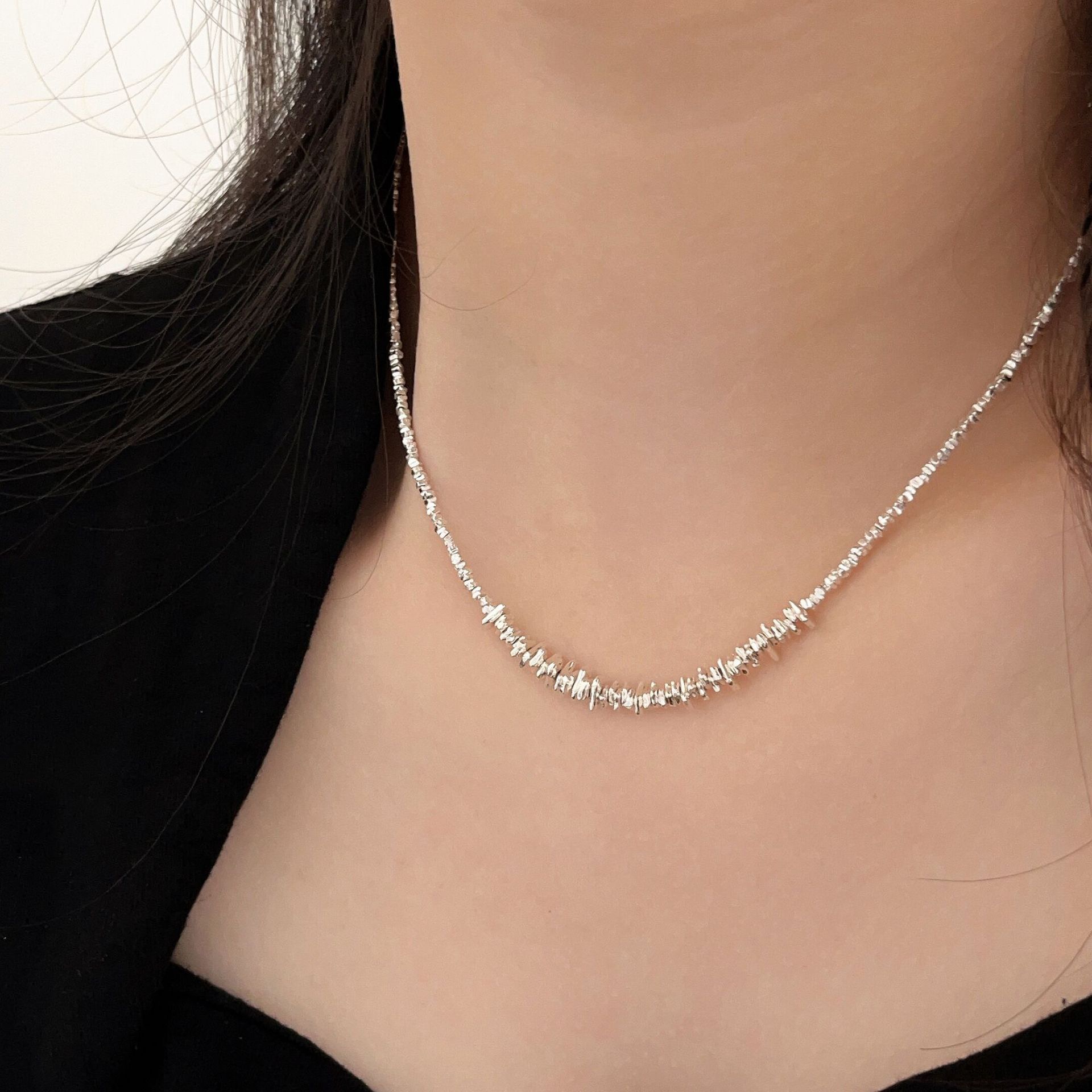 s925碎银子项链女轻奢小众设计感高级锁骨链2025新款纯银颈链配饰