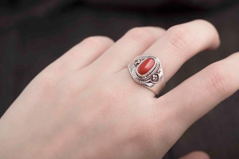 尼泊尔手工925银饰品镶嵌宝石戒指女男开口藏式 创意复古民族风