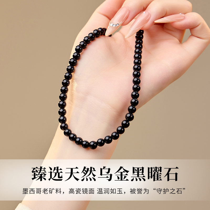 天然黑曜石项链女高级感锁骨链黑玛瑙吊坠情侣送礼饰品官方旗舰店