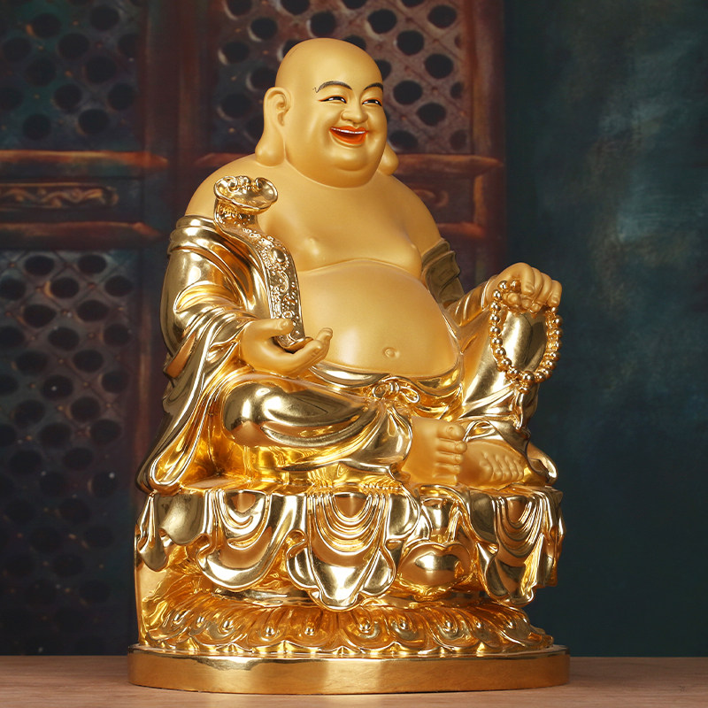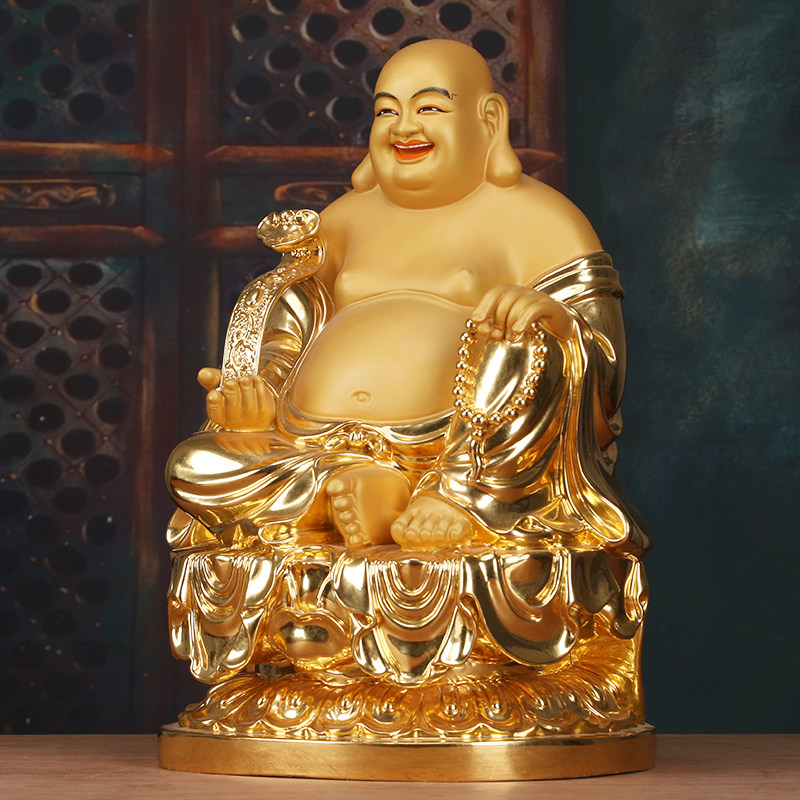 台湾纯铜鎏金弥勒佛佛像大肚笑佛家用客厅供奉弥勒菩萨摆件开心佛