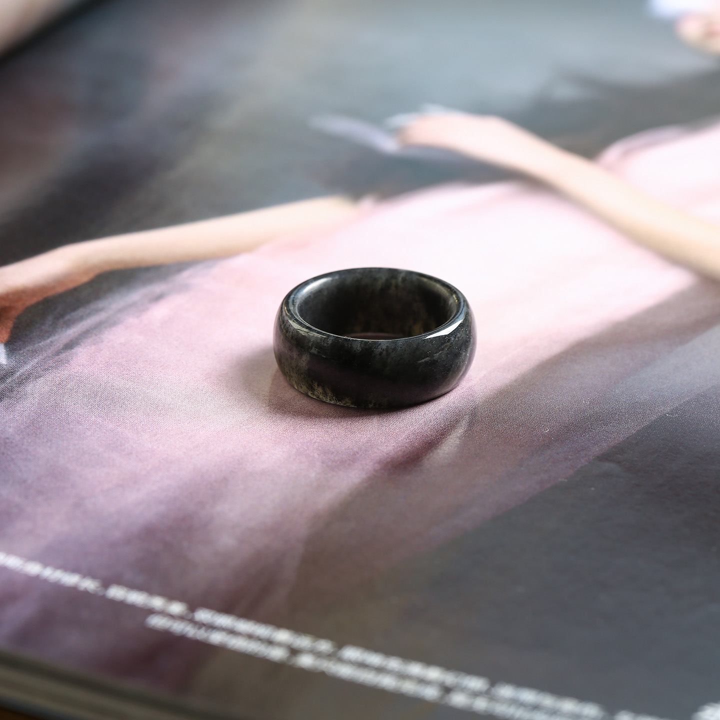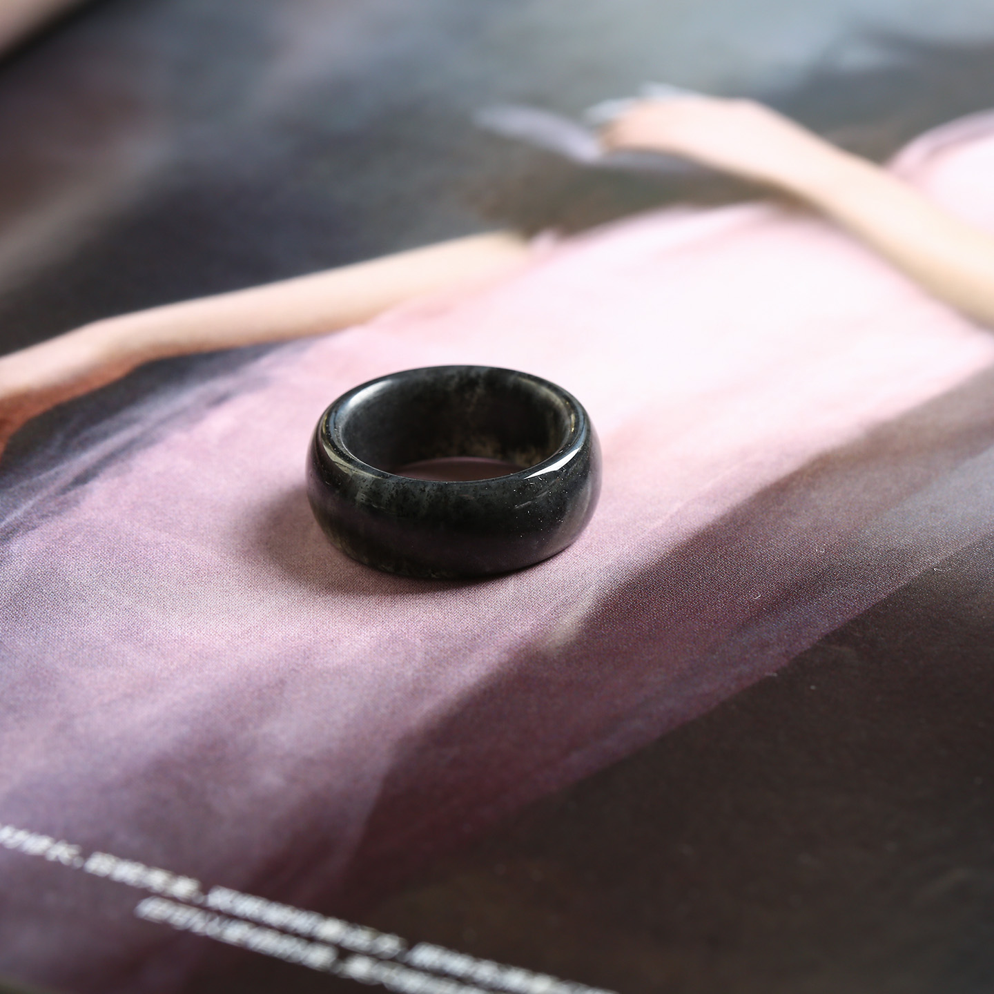 23号戒指 新疆和田玉青花籽料 籽玉墨玉大尺码圆弧素圈指环 453
