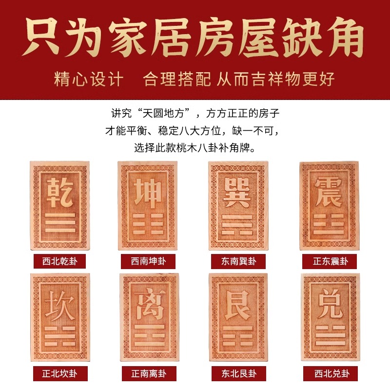 八卦补角牌房屋缺角补角震巽离坤兑坎艮乾卦桃木补角牌挂牌挂件