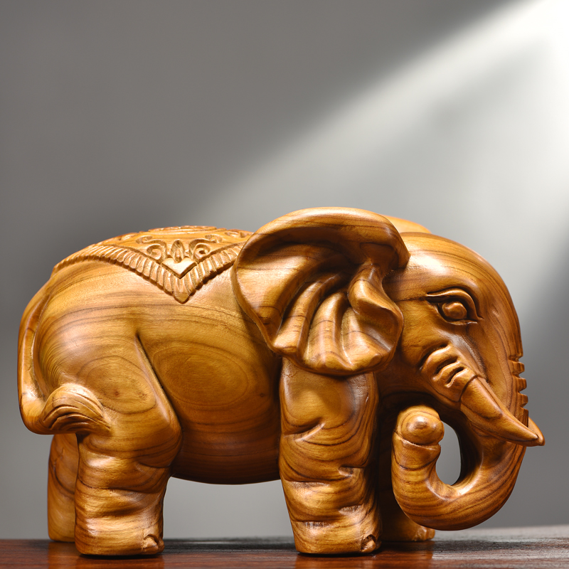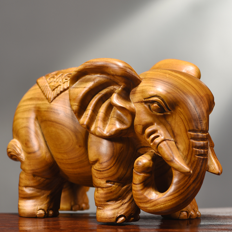香樟木雕大象摆件实木一对大号吉祥如意家居客厅电视柜装饰工艺品