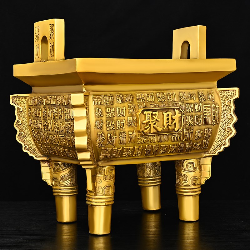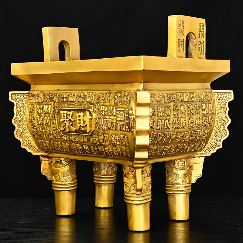 纯铜香炉四方鼎铜鼎摆件鼎盛千秋C铜聚财鼎公司前台办公室装饰工