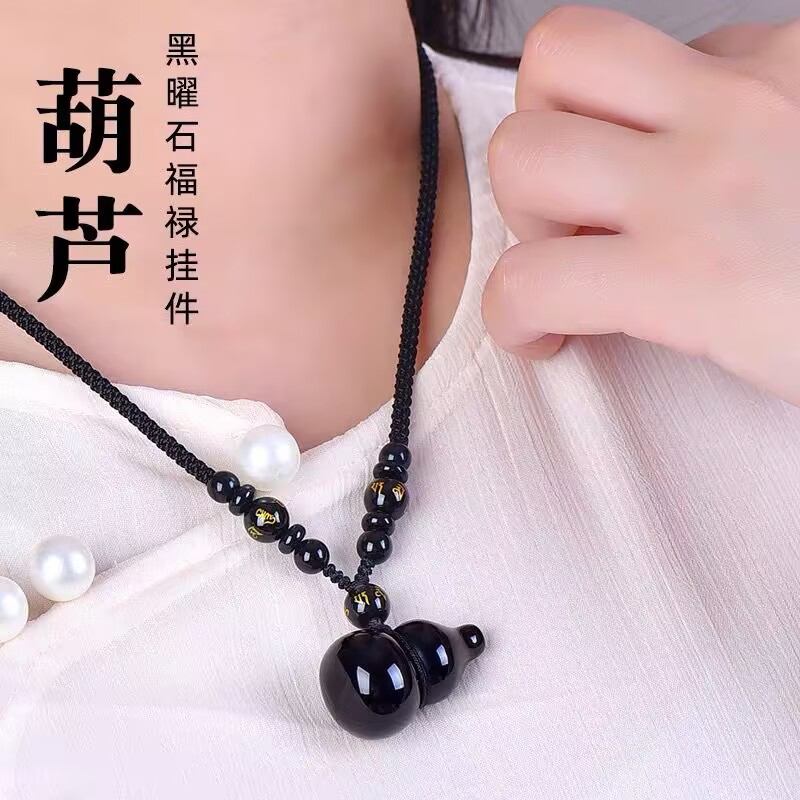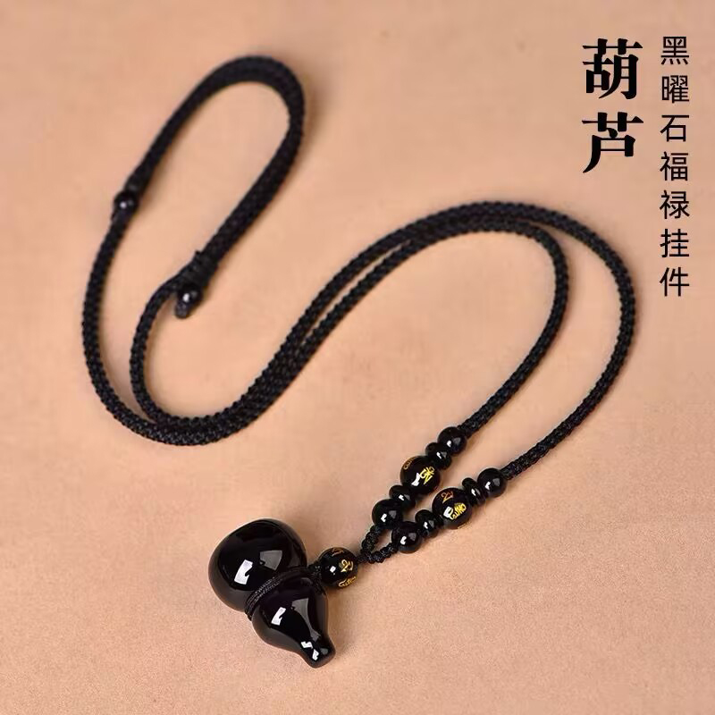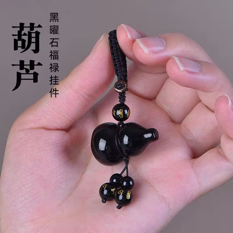天然黑曜石葫芦项链纯黑小葫芦吊坠挂件汽车钥匙扣男女本命年饰品
