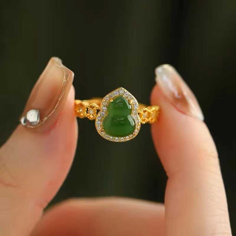 新中式花丝和田碧玉葫芦戒指女国风小众设计轻奢百搭高级感食指戒