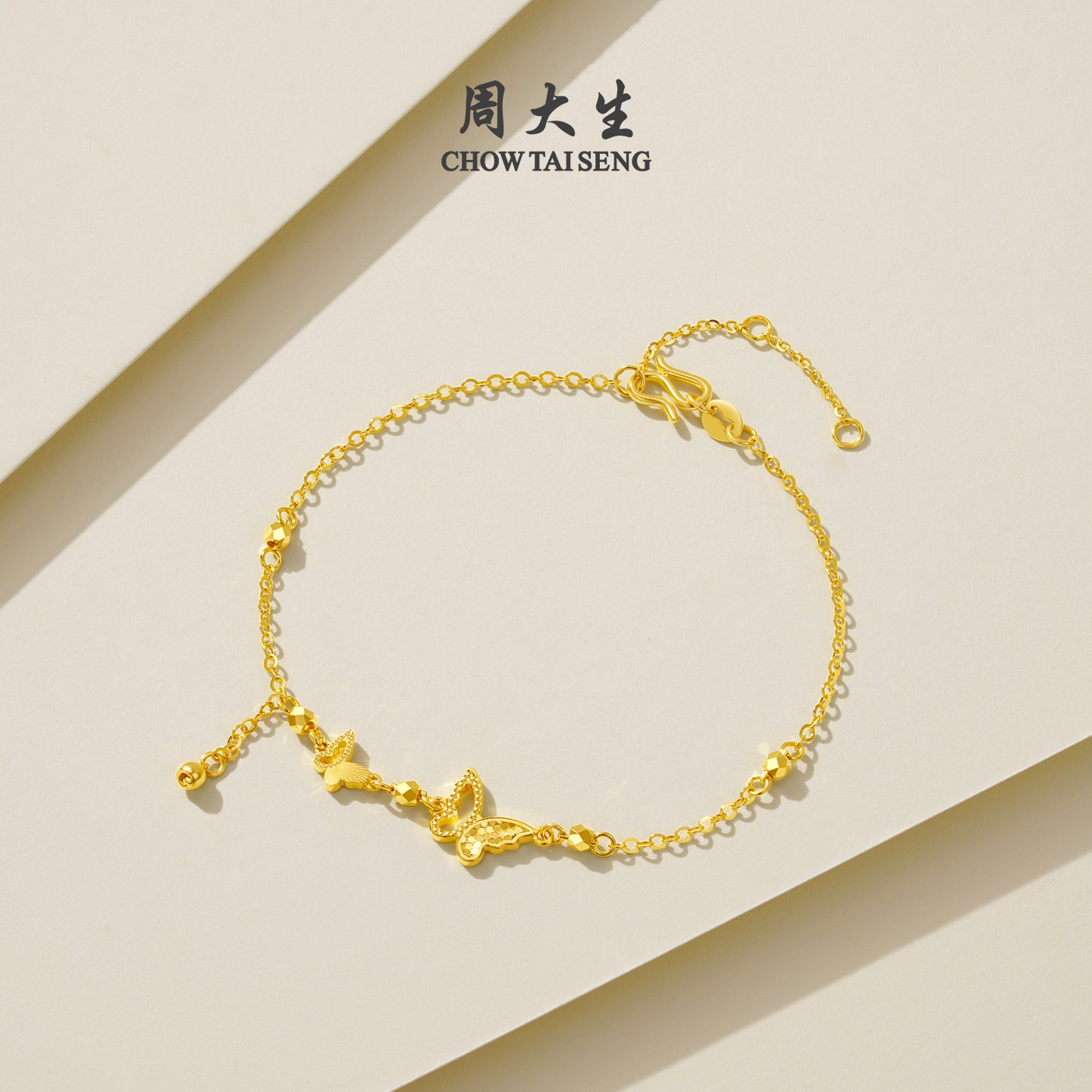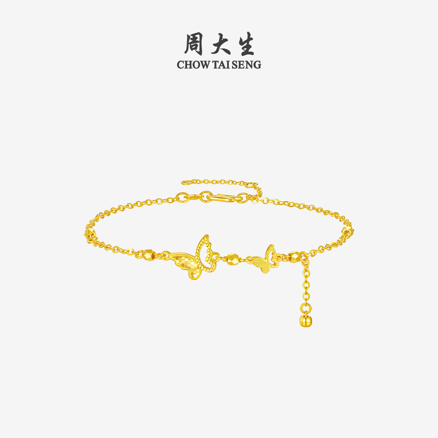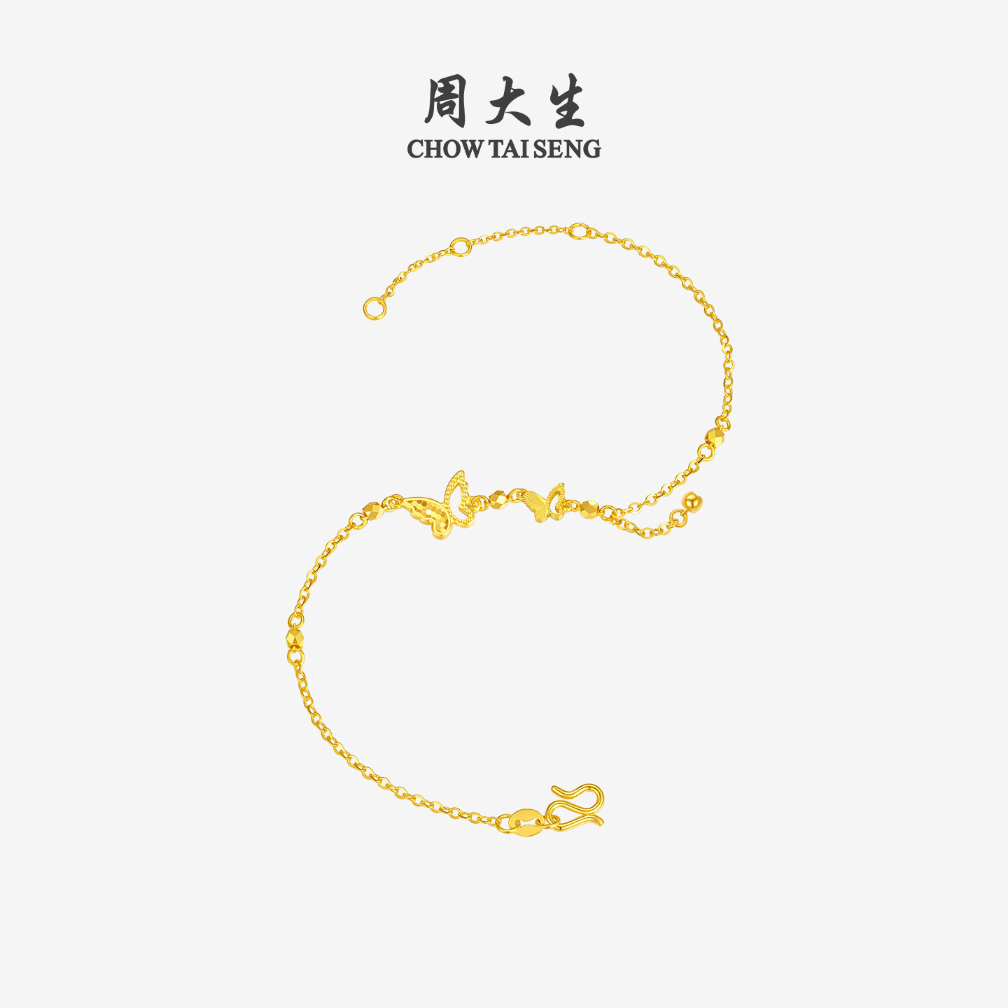 圣诞礼物周大生黄金手链女足金蝴蝶小金珠碎碎冰O字链手饰送女生