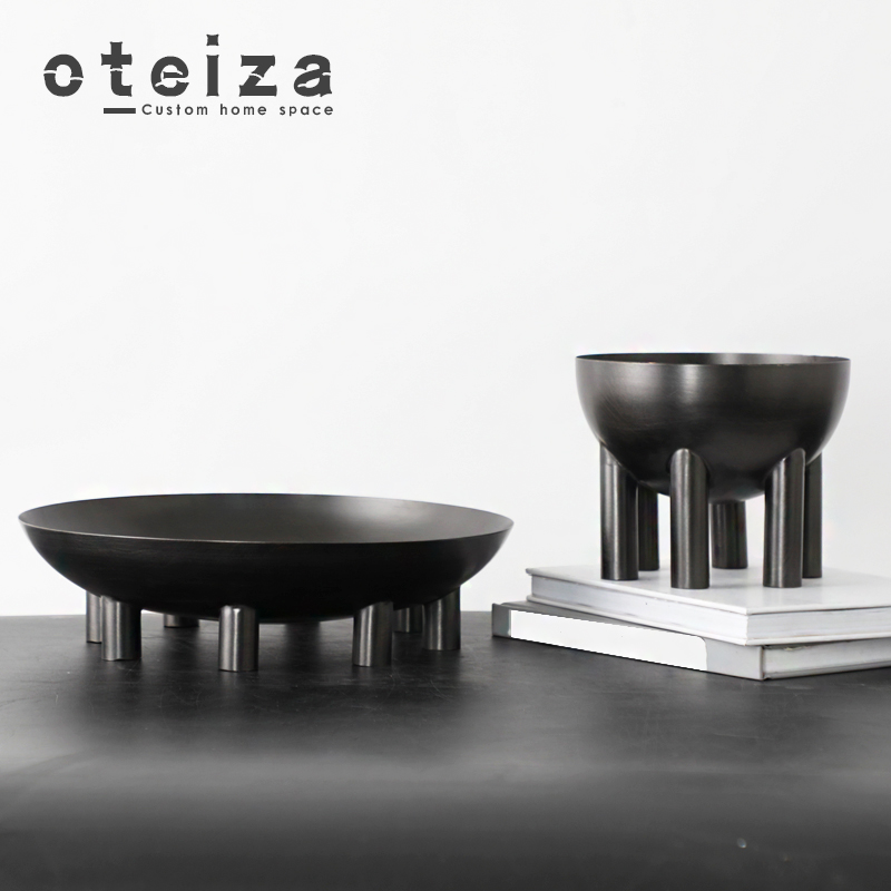 Oteiza现代轻奢样板房客厅茶几托盘摆件个性高脚金属大理石果盘