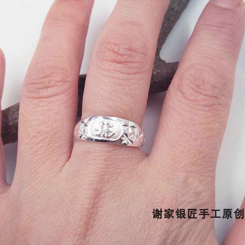 99足银满天星福字戒指女复古纯银开口中老年戒指奶奶母亲节礼物