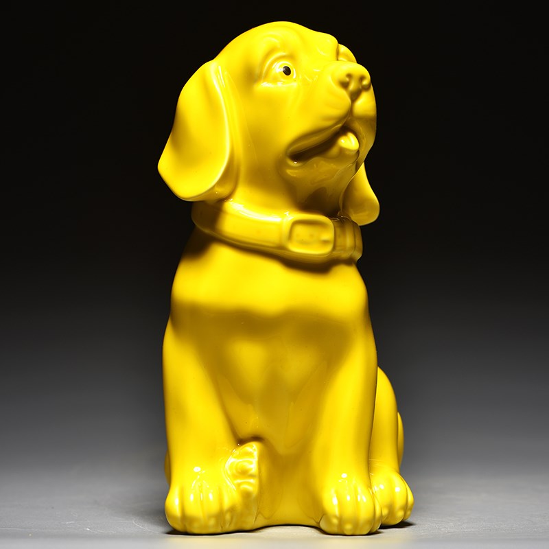 黄色陶瓷狗摆件可爱十二生肖小狗工艺G旺财客厅家居房屋补角装饰