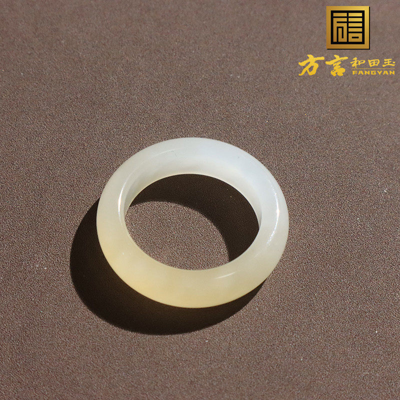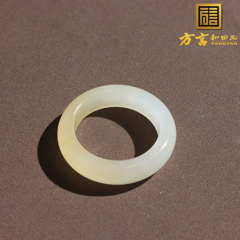 嗨翻天方言和田玉温润细腻新疆且末料蜂蜜水糖白玉17mm玉指环O1
