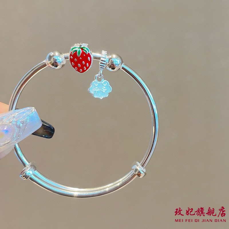 香港正生库洛米平安喜乐草莓福纯银手镯足银9999女中大童儿童学生