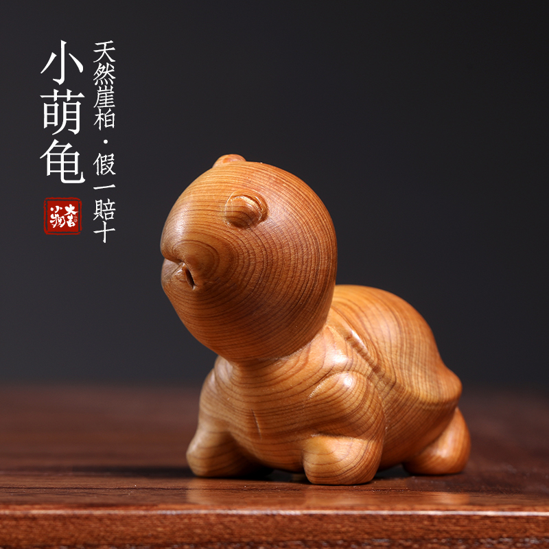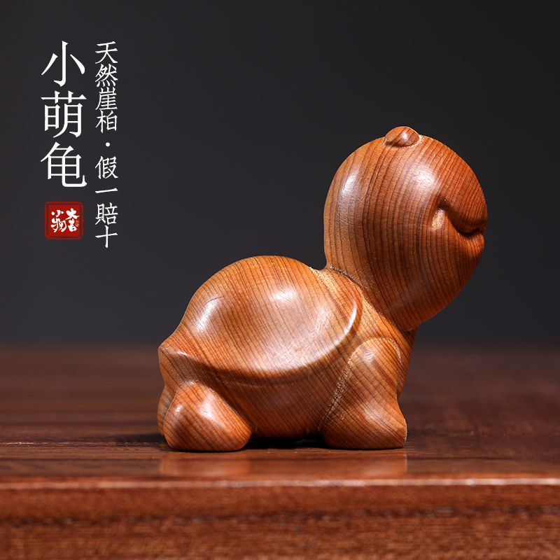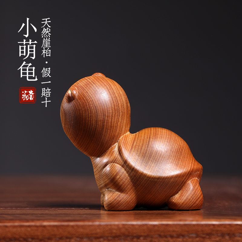 天然崖柏木实木雕刻小萌龟创意软萌可爱乌龟装饰摆件文玩手把件