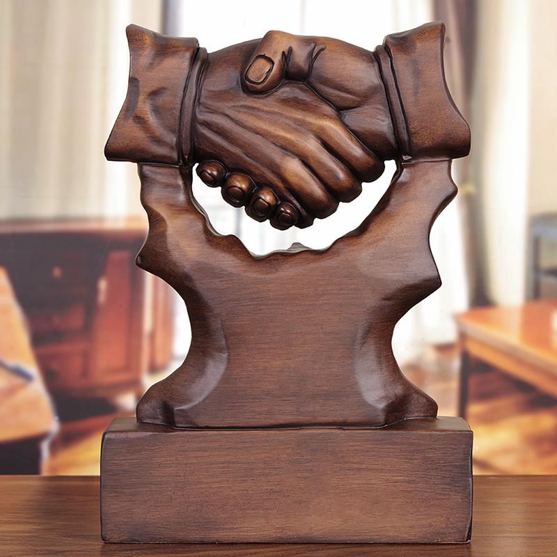 极速诚信握手雕塑摆件实木u雕 合作共赢办公室桌面摆设送客户商务