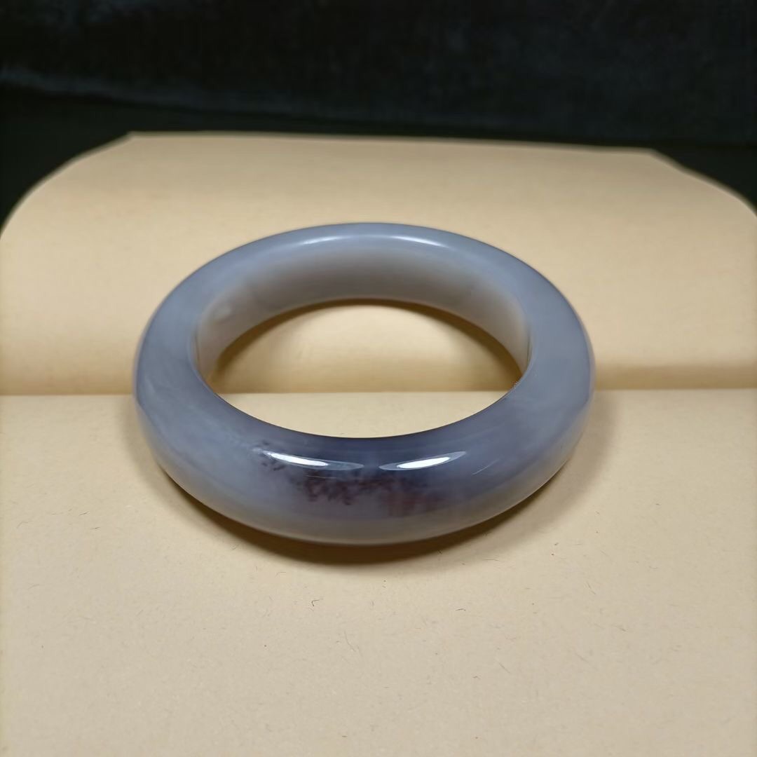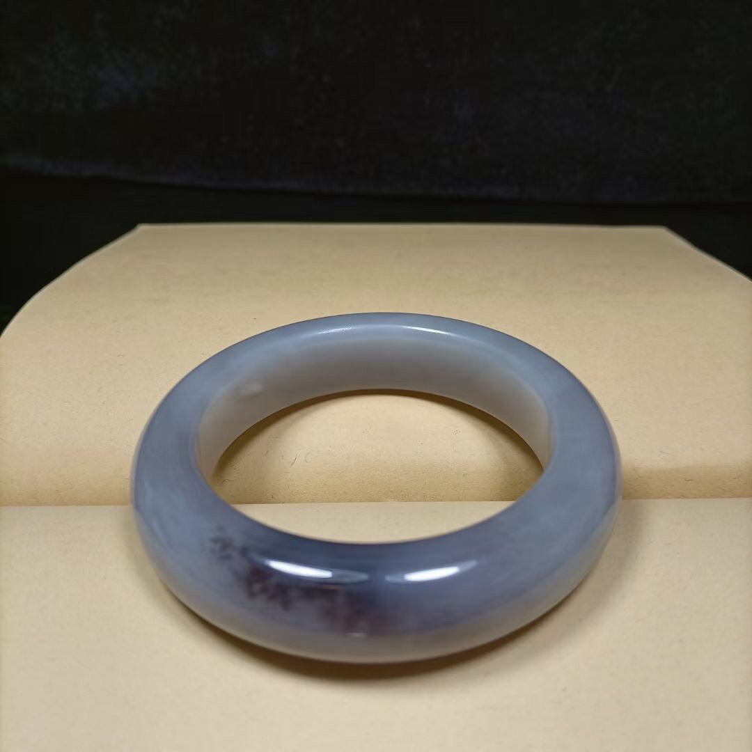 纯天然青海料和田玉烟紫玉镯玉镯烟紫色镯子54.8圈口带证书