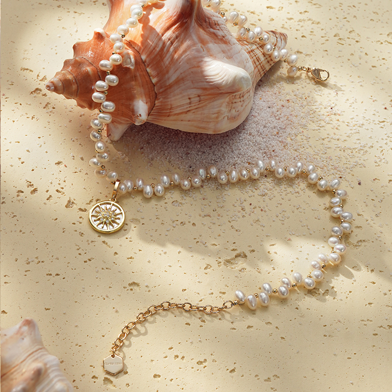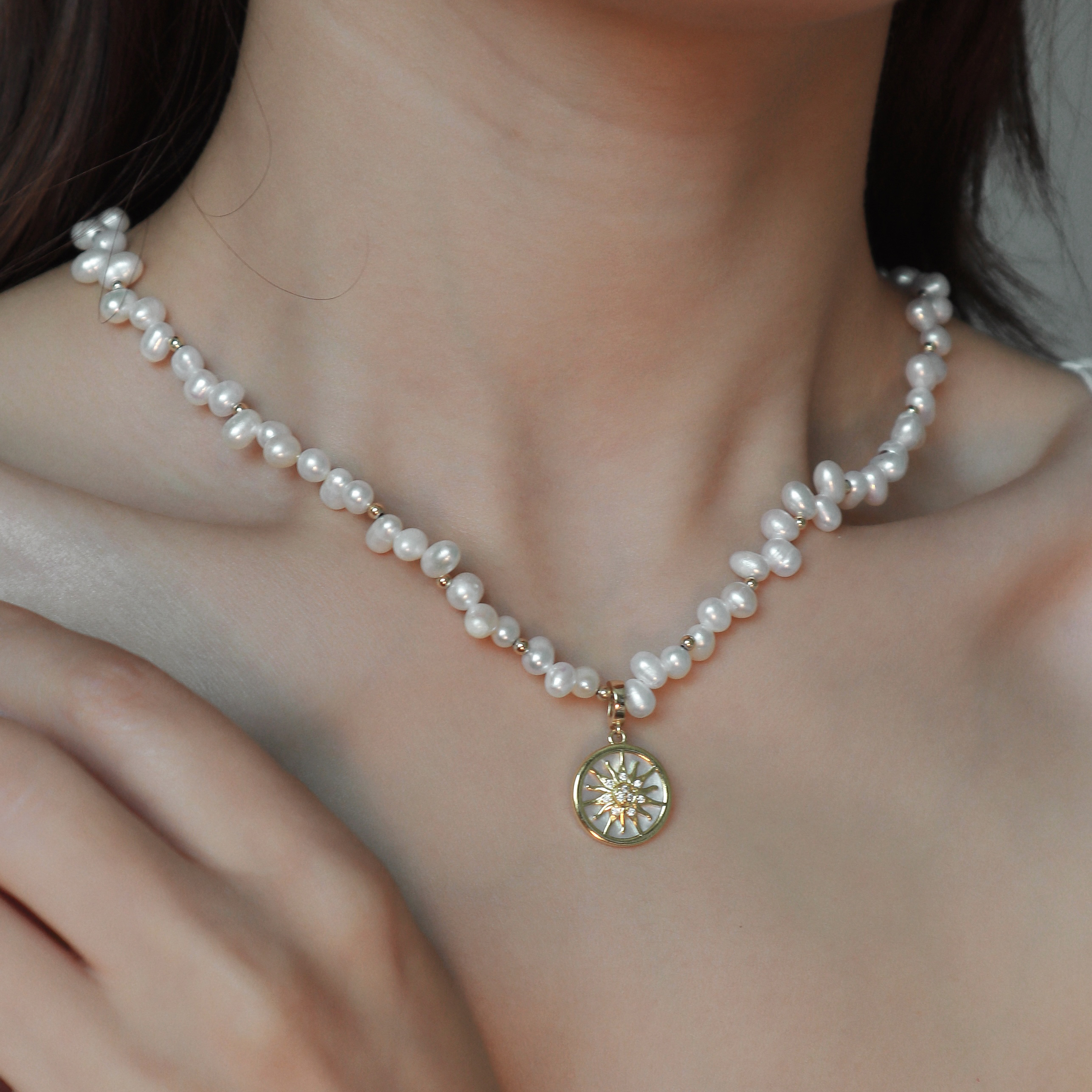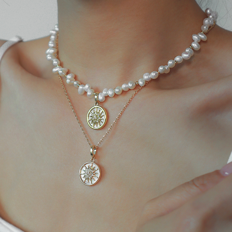 CLORIS YING天然巴洛克珍珠项链设计师不规则叠戴太阳神吊坠颈链