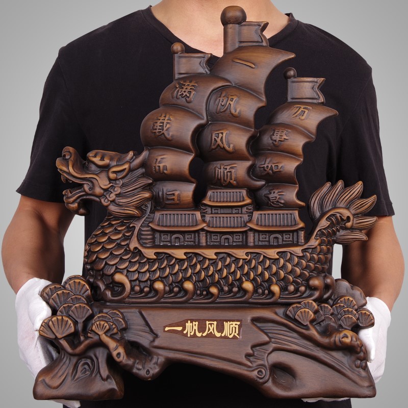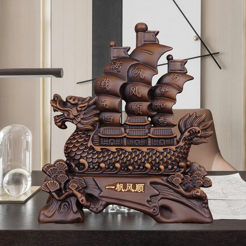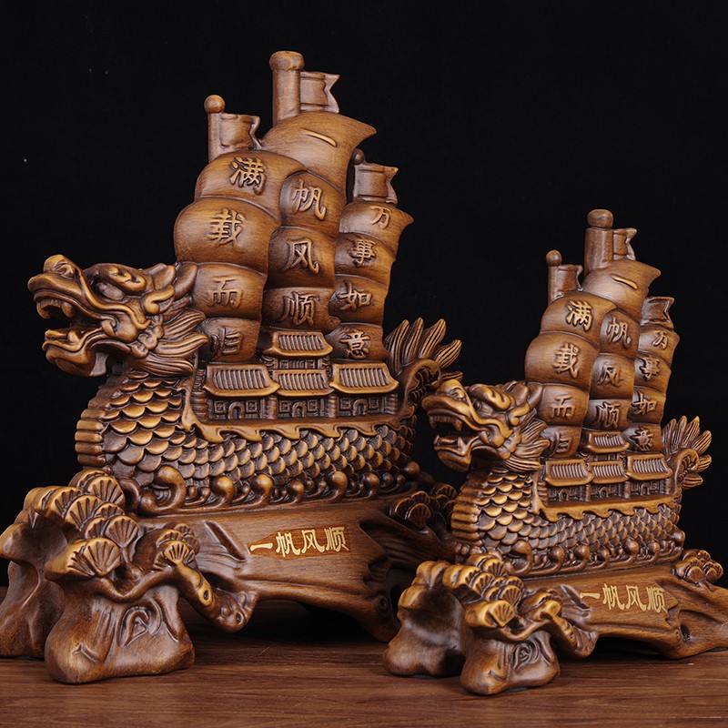 实木一帆风顺龙船摆件客厅办公室公司前台帆O船装饰品乔迁开业礼