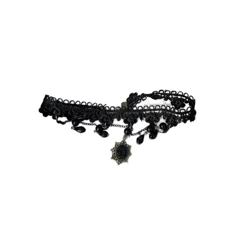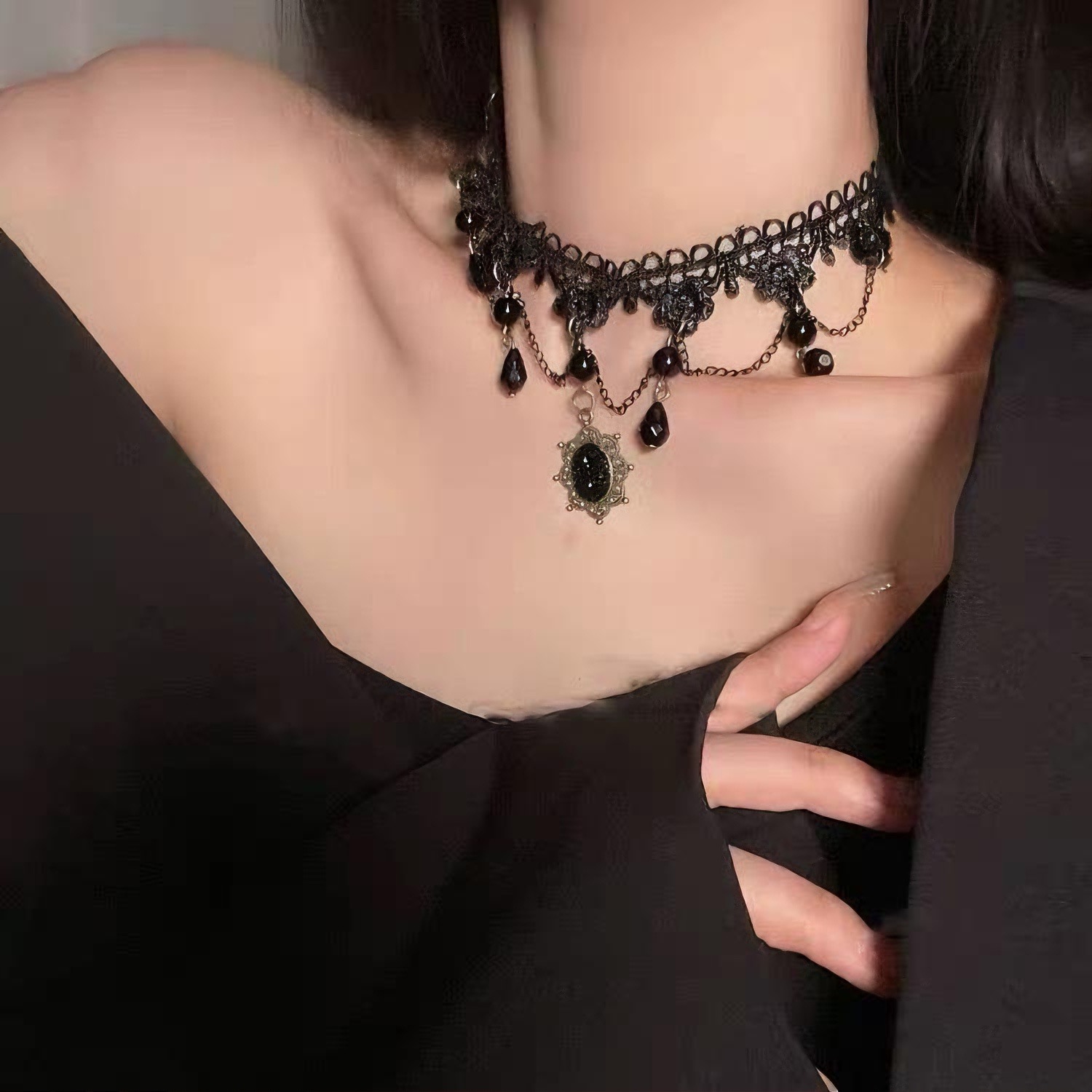 黑色暗黑蕾丝脖子复古项圈洛丽塔颈链锁骨链项链choker配饰万圣节
