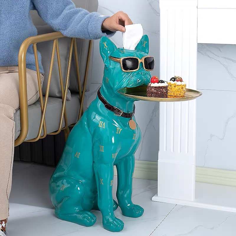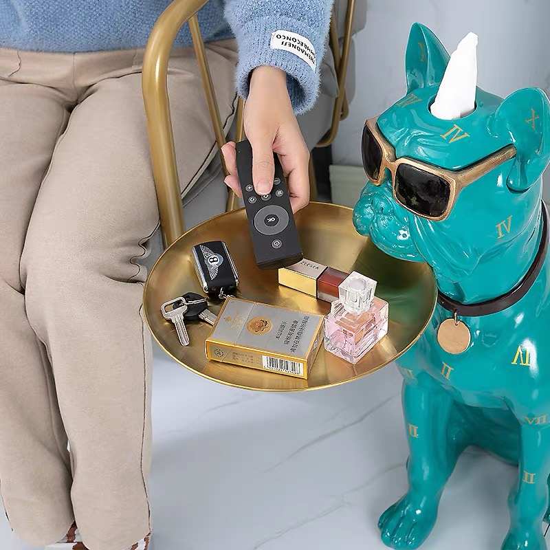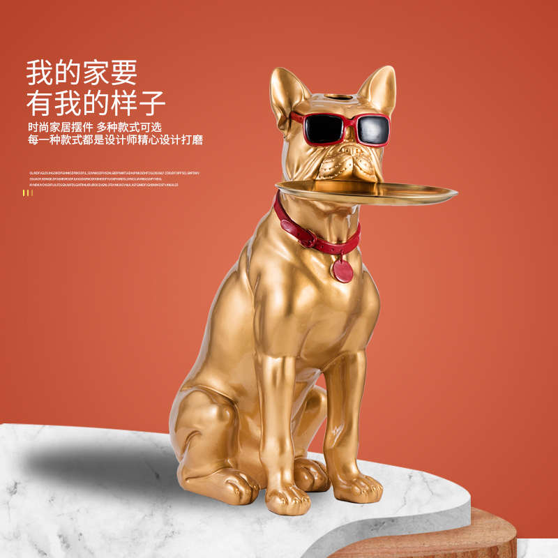 网小圆创意狗红小装饰品简约摆件茶几桌床头落地北欧奢轻托盘现代