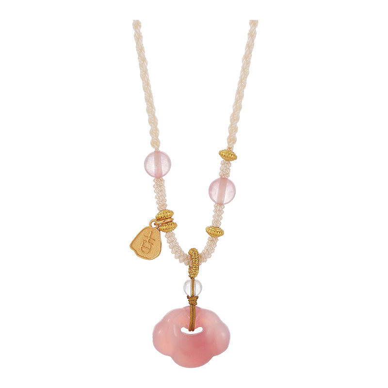 粉色桃花仿和田玉祥云锁吊坠编绳项链女新中式国风小众精致锁骨链