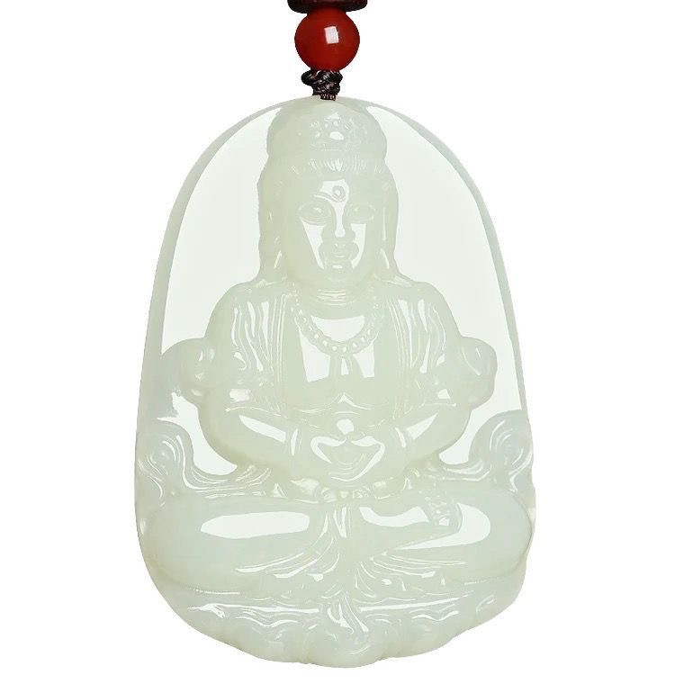 和田色玉无事牌吊坠项链玉石玉佩男女情侣款挂件毛衣链玉佩观音