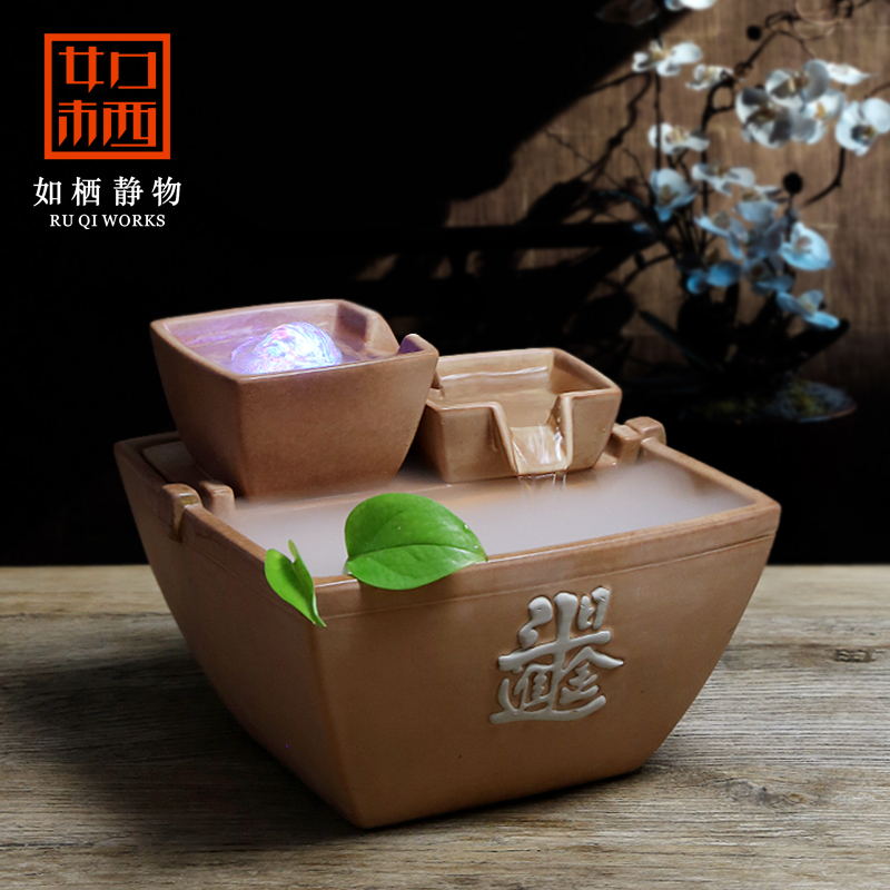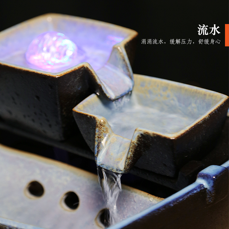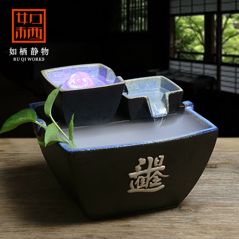 陶瓷桌面流水摆件招财客s厅风水轮小喷泉办公室雾化加湿器景观鱼