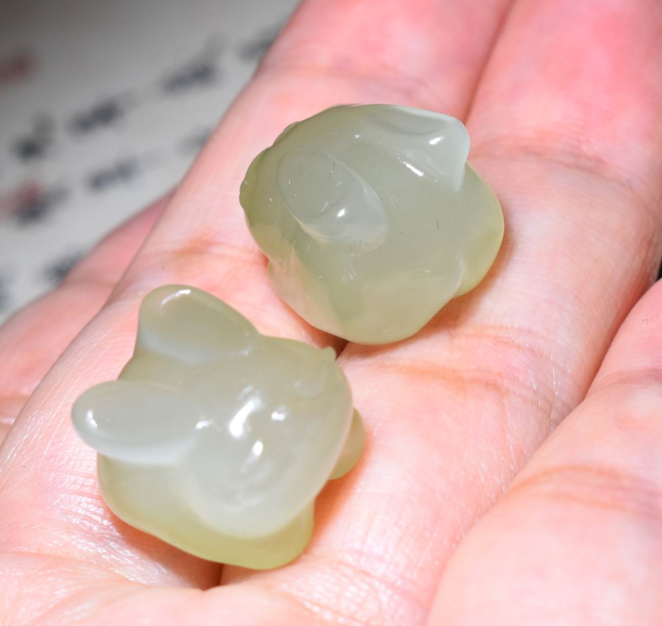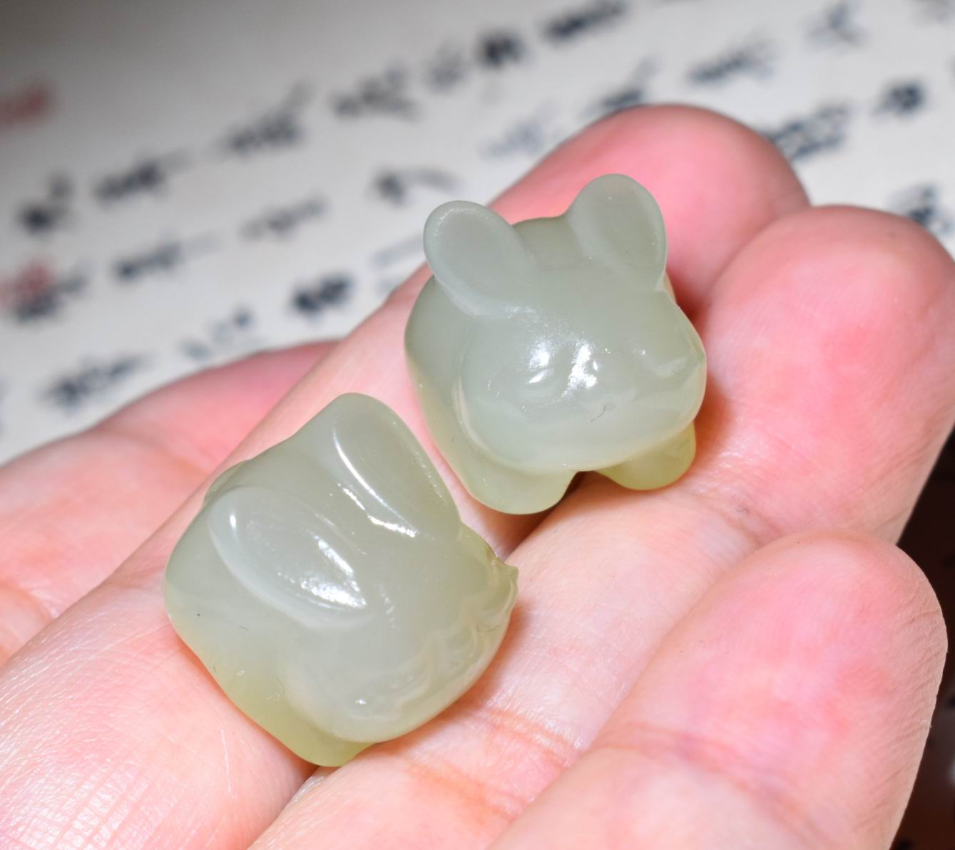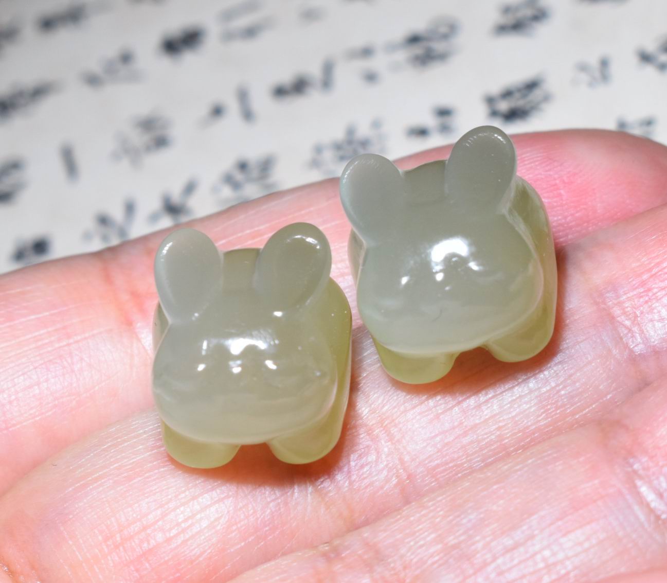 新疆的猫JJ112314 4.9+4.9克,一对特细油润晴水小兔子挂件