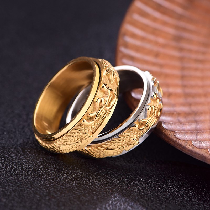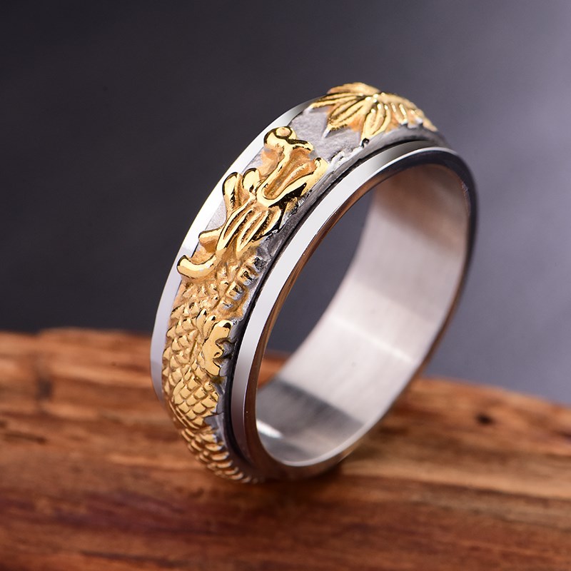 极速钛钢浮雕龙纹戒指可转动x男士生肖龙本命年潮个性食指尾戒子