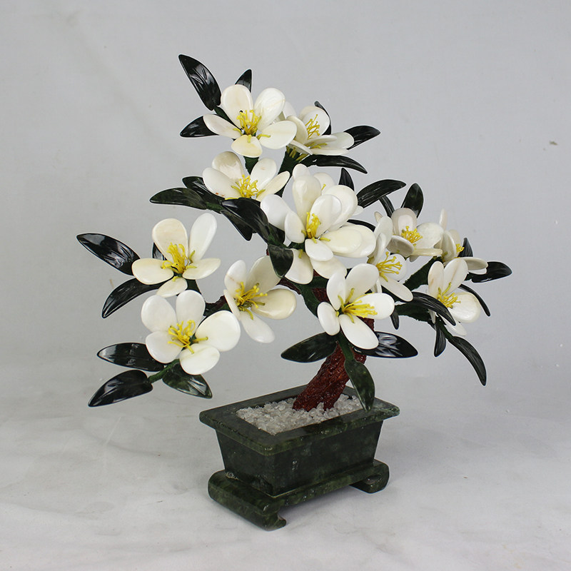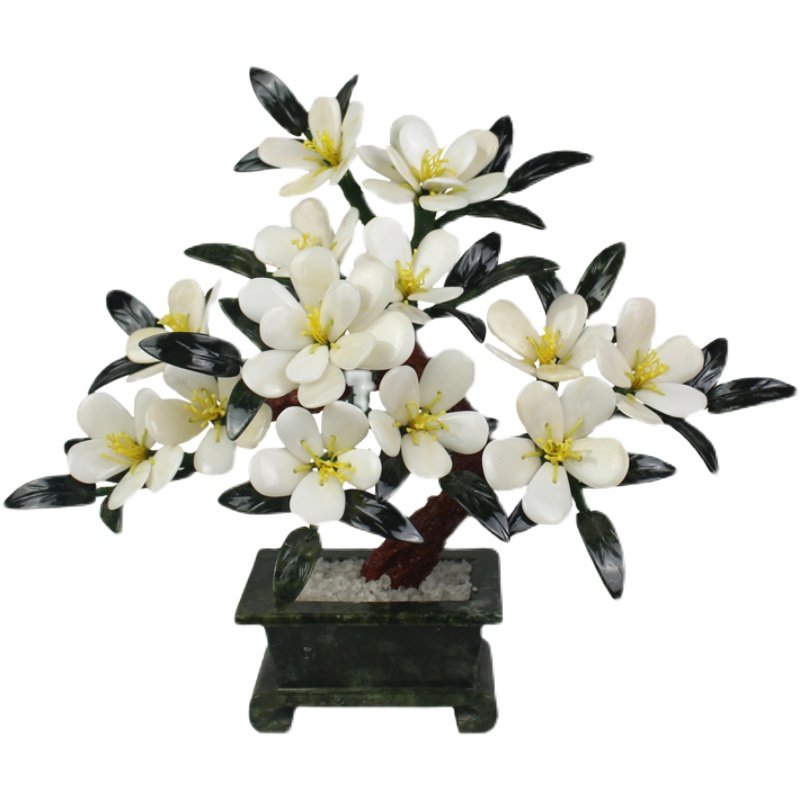 天然玉石白兰花客厅中式创意酒柜装饰品摆件家居饰品玄关招财盆景