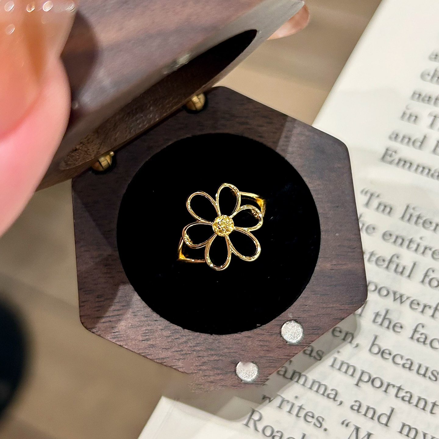 钛钢不掉色镂空花朵金色戒指女开口独特高级感食指戒小众新款指环