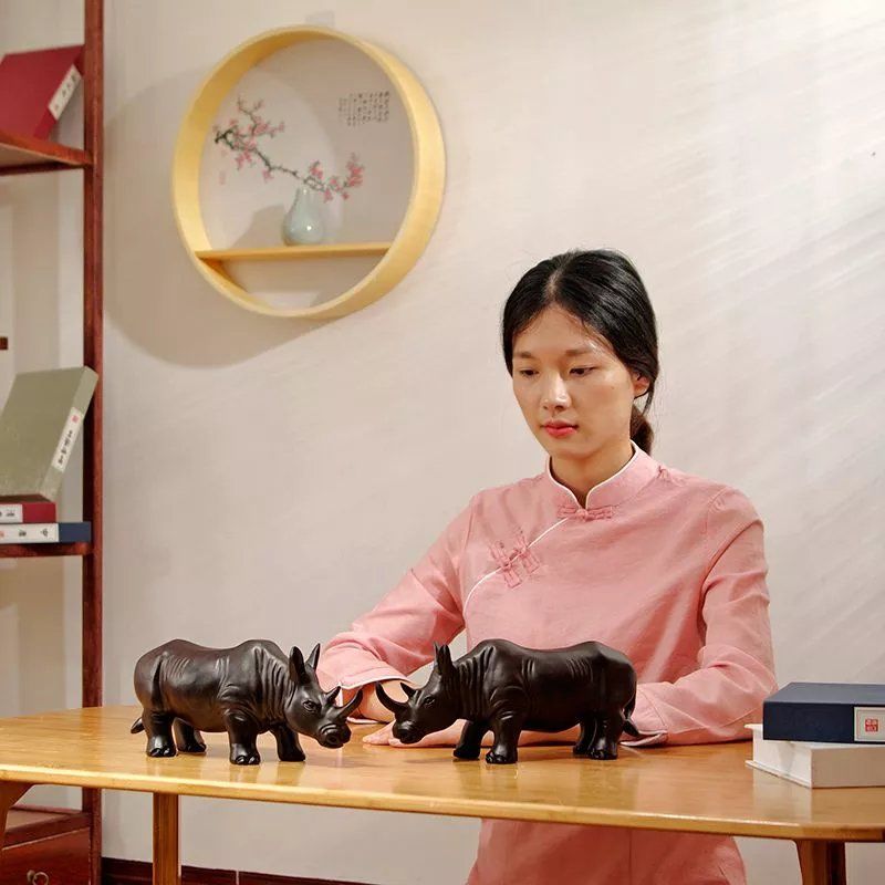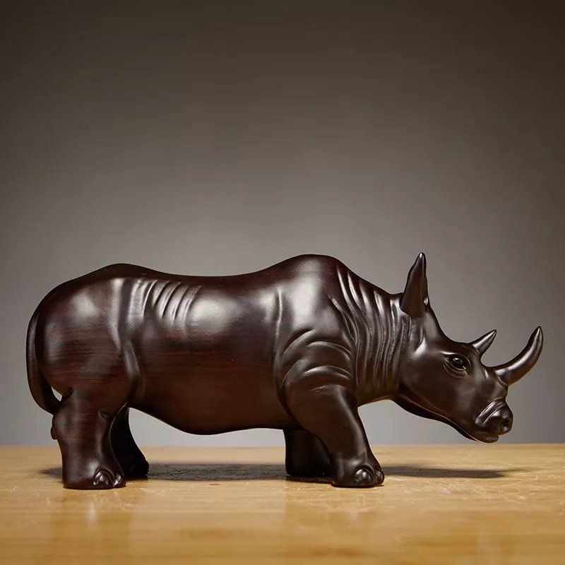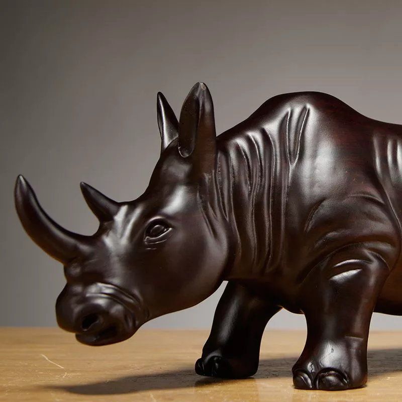 黑檀木雕犀牛摆件实木质雕刻动物家装办公室桌面装饰品红木工艺品