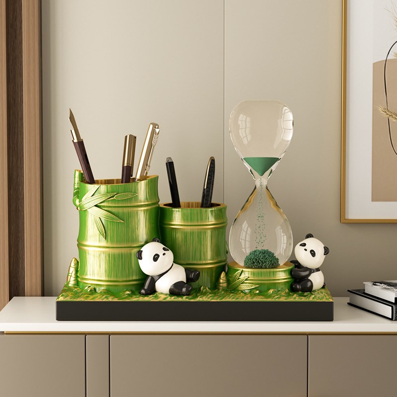 熊猫文创节节高升笔筒沙漏摆件办公室桌面装O饰中国特色礼物送老