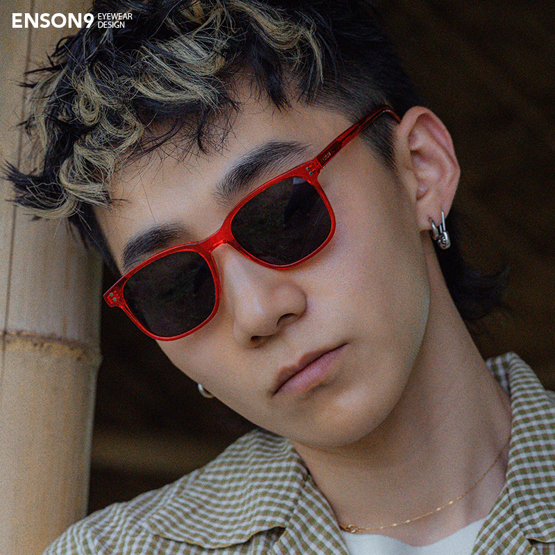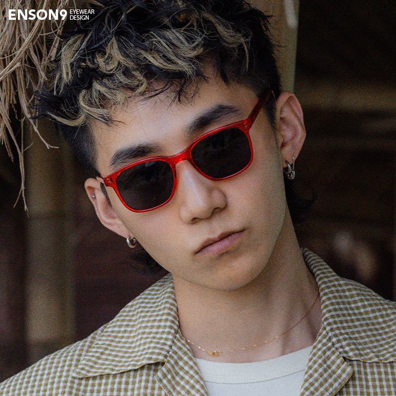 enson9复古Y2K小方框红色板材墨镜潮男女 半透明偏光防紫外太阳镜