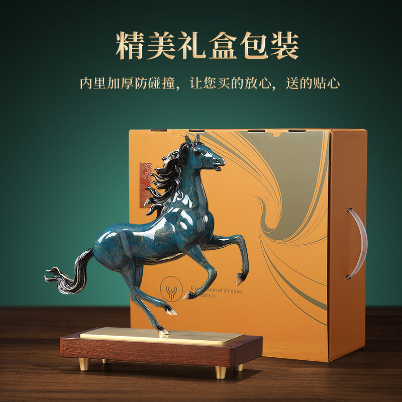马到成功黄铜马摆件送领导办公室高档客厅博古架柜子公司开业礼品