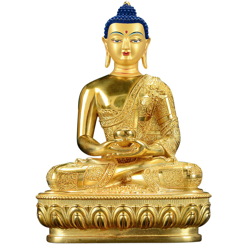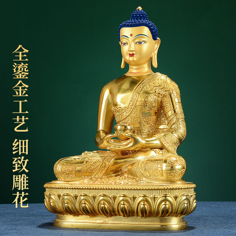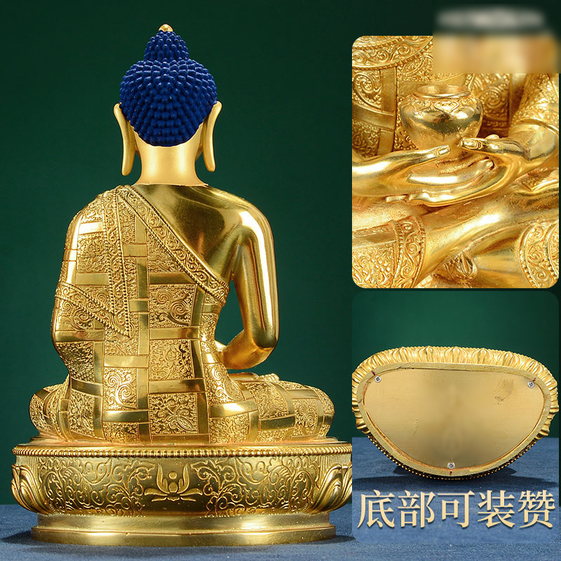 阿弥陀佛铜像5/7/10寸家用鎏金雕花铜铜像三宝佛铜摆件